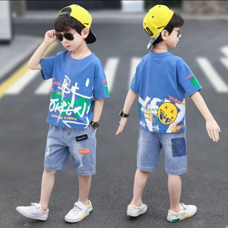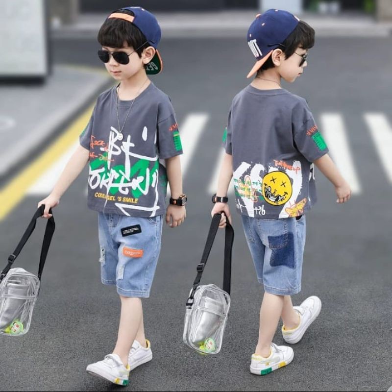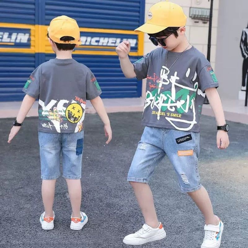 Setelan baju anak ABG import murah - set kaos celana pendek branded anak laki-laki import korea