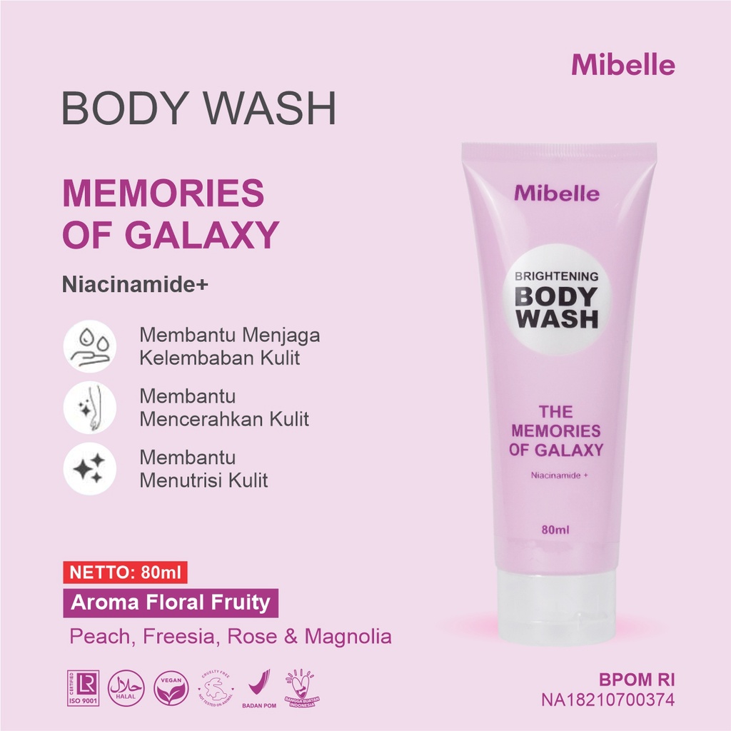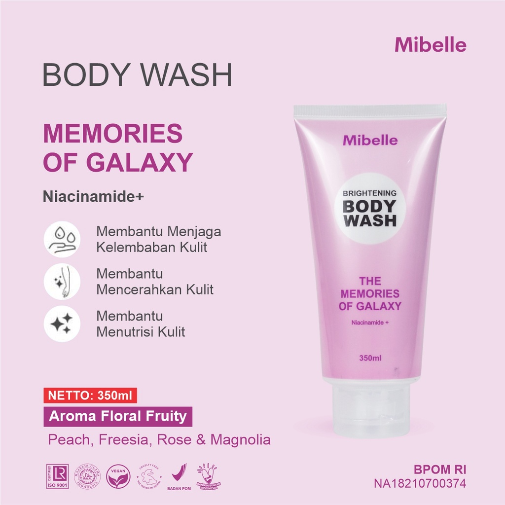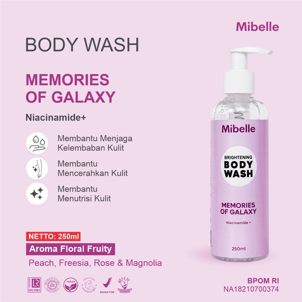 Mibelle Bodywash Glow Boost Galaxy, Anti kusam, cerah merata, lembab seharian dengan niacinamide