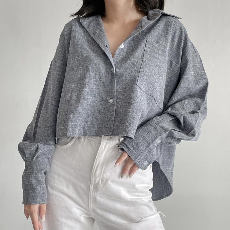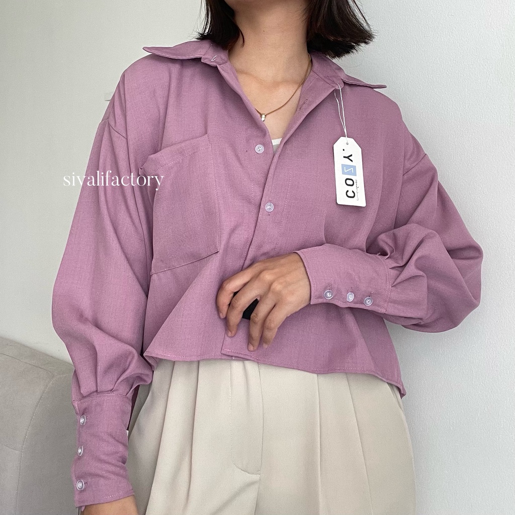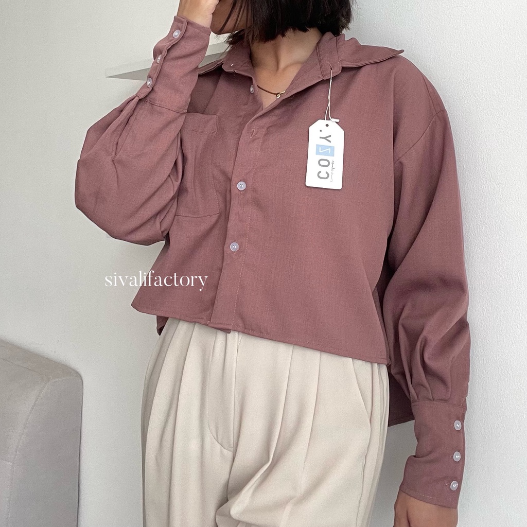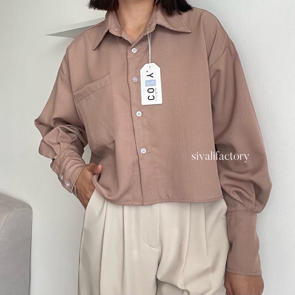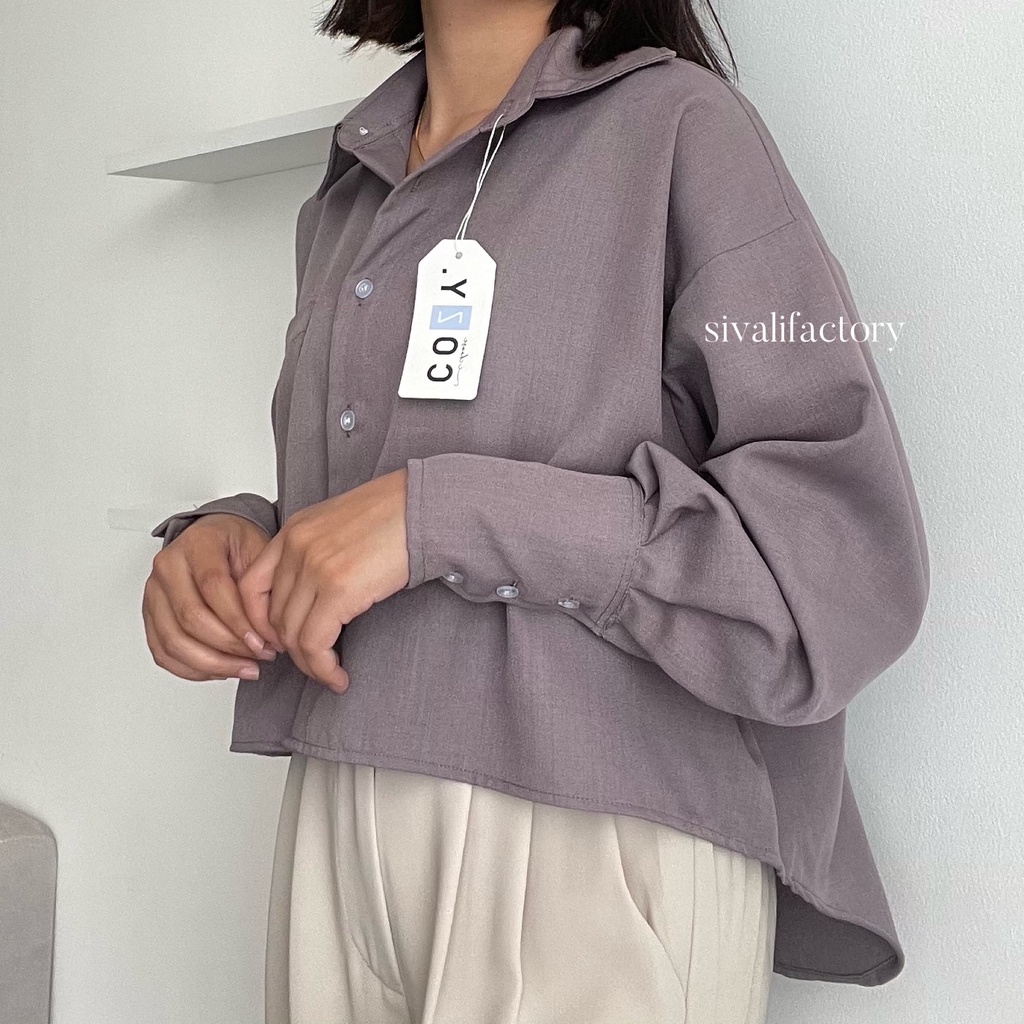 SIVALI Kemeja Wanita Lengan Panjang Casual/Kerja - Oversized Shirt - Outer Kemeja Crop 3306
