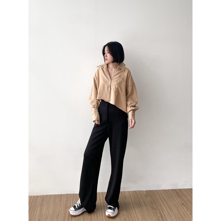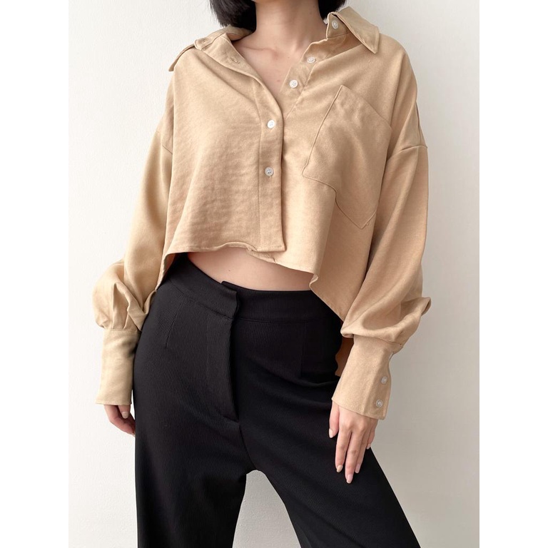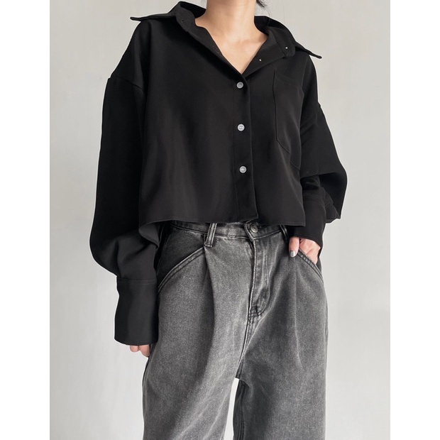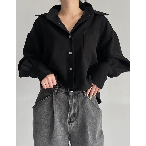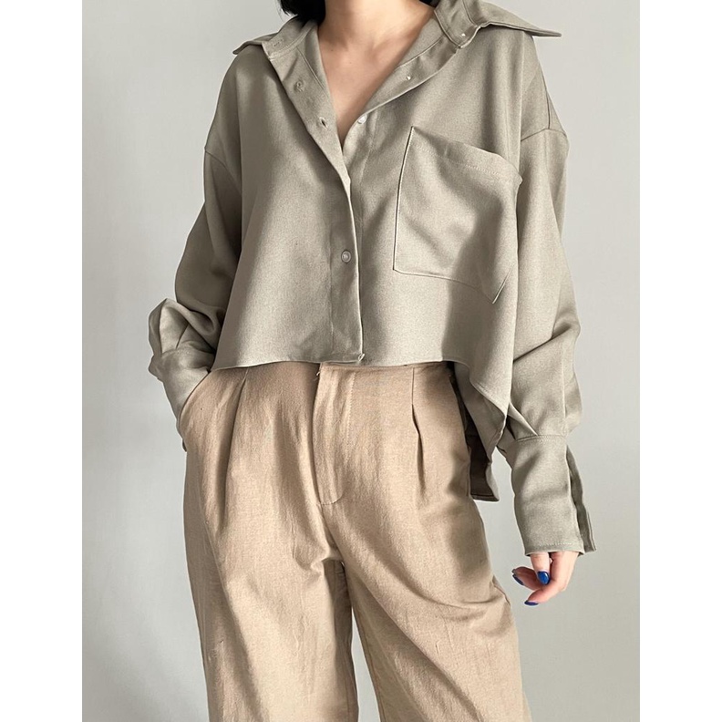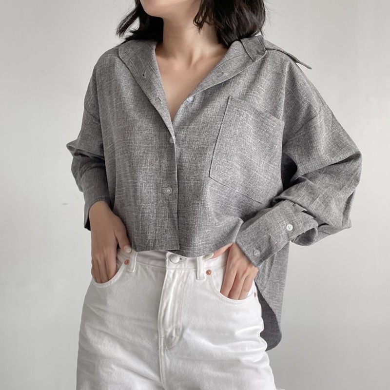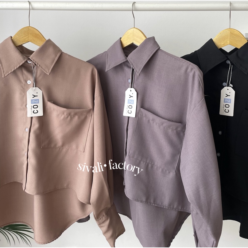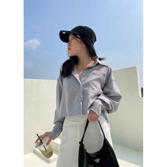 SIVALI Kemeja Wanita Lengan Panjang Casual/Kerja - Oversized Shirt - Outer Kemeja Crop 3306