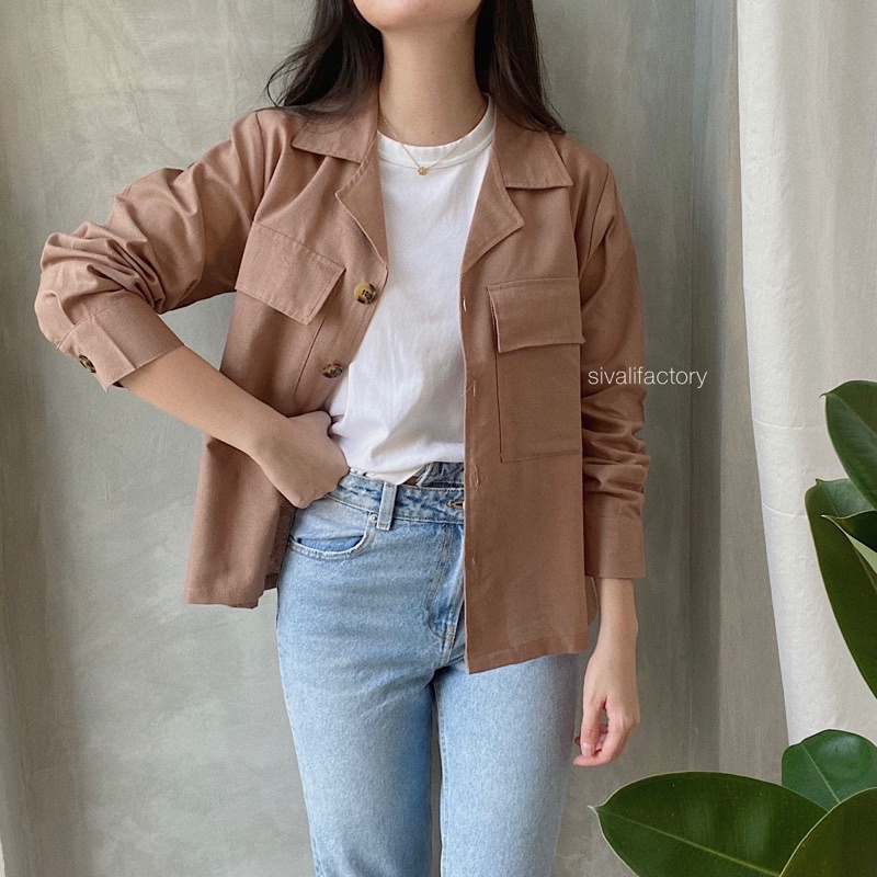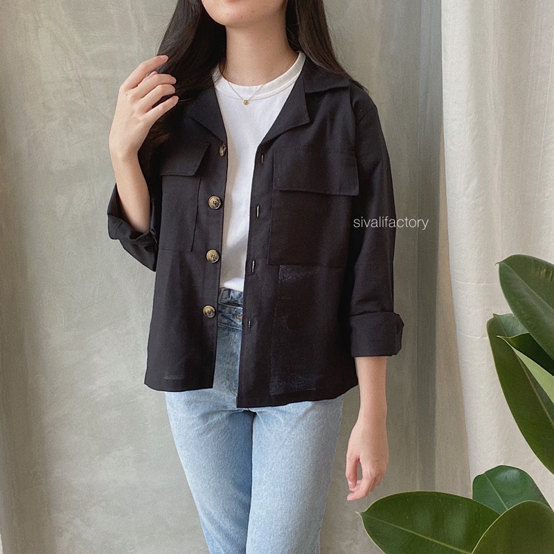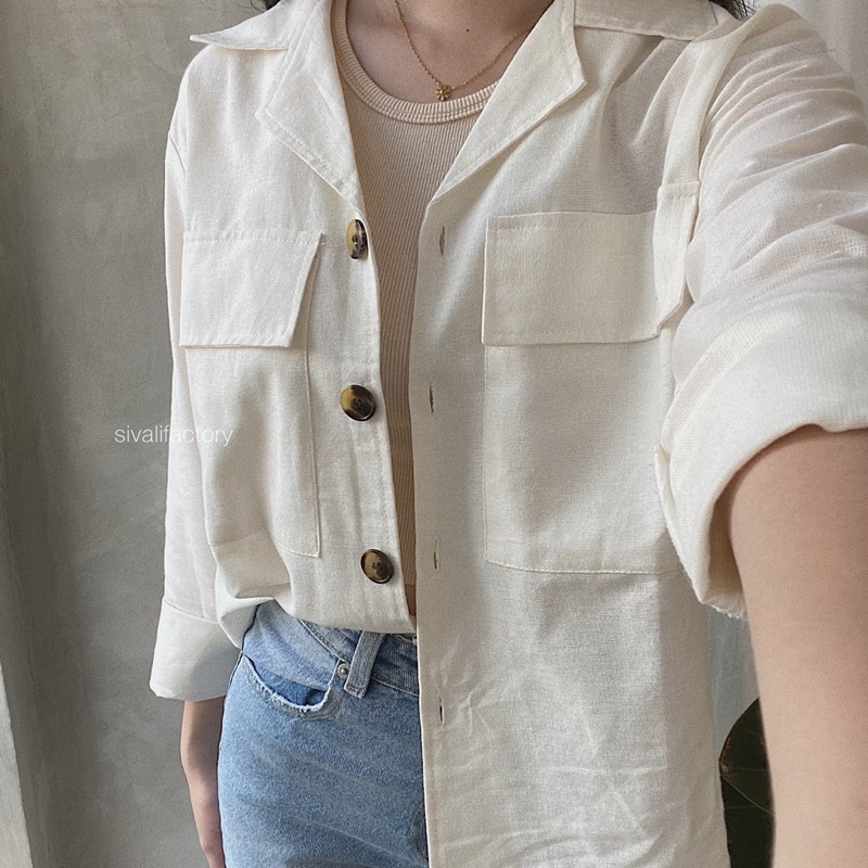 SIVALI Claryn Outer Linen - Kemeja Linen - Atasan Wanita | Kardigan Saku 2278