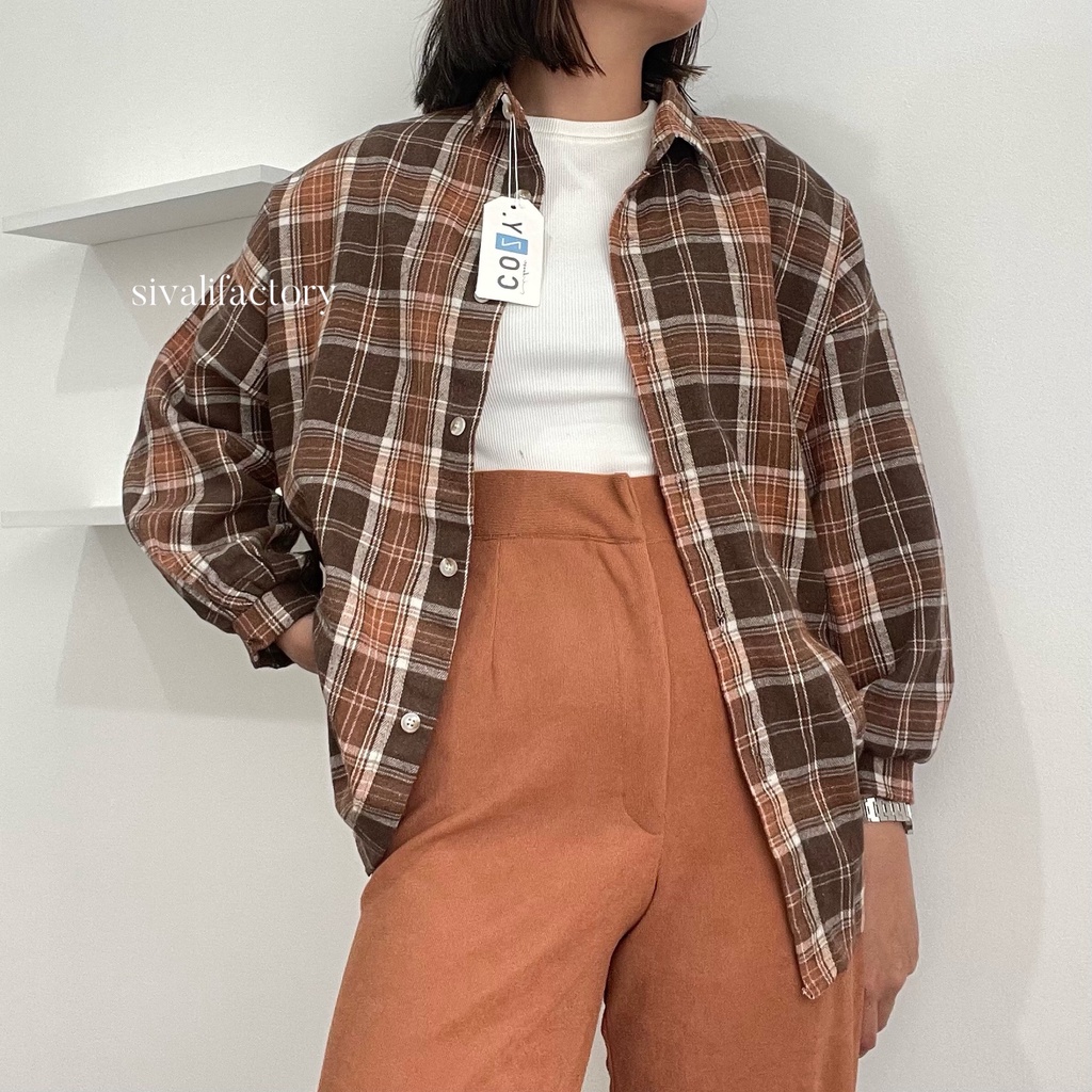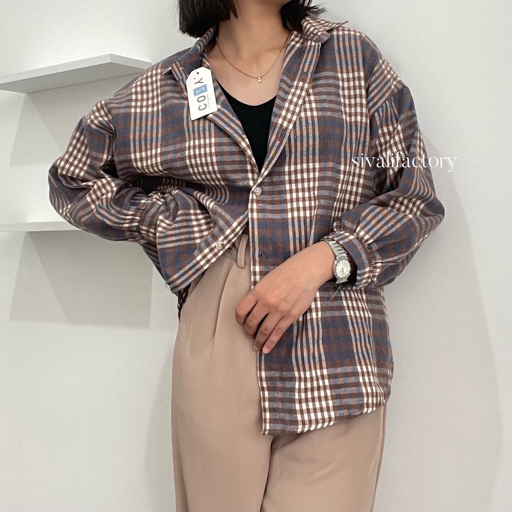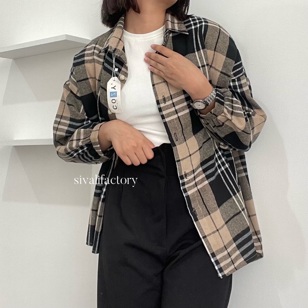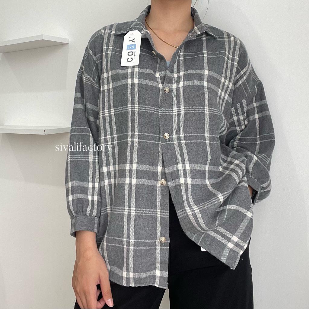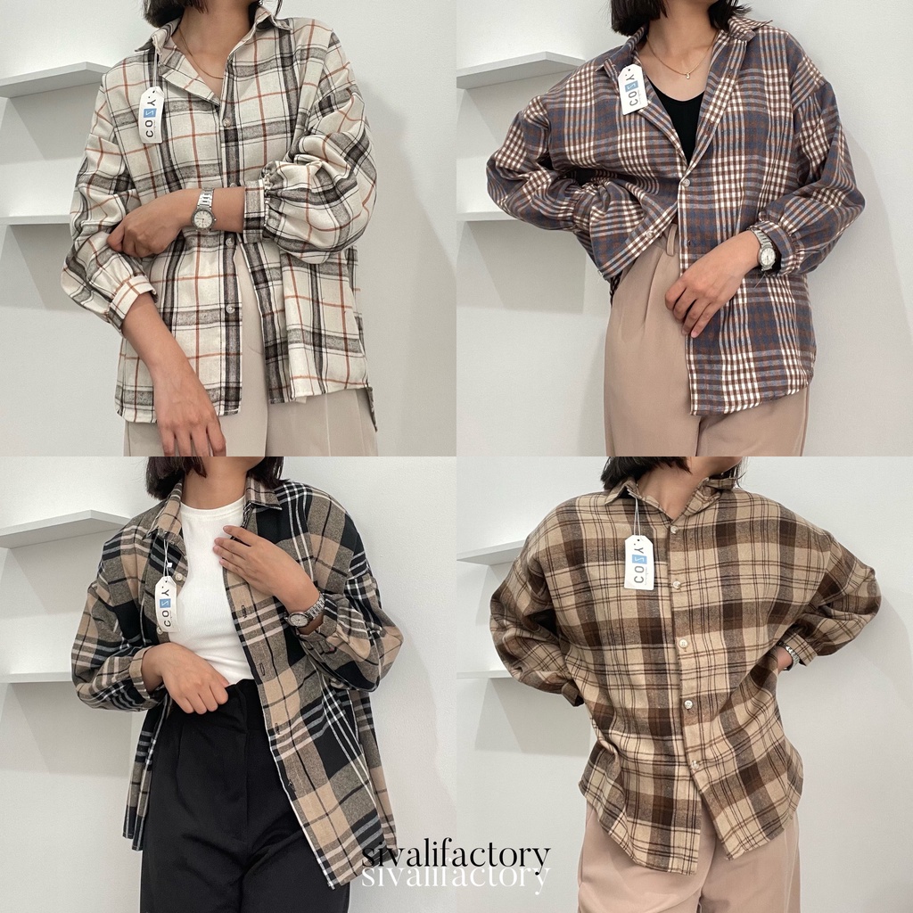 SIVALI Kemeja Flanel Blouse Kotak Tartan - Kotak Baju Korean Style Wanita Kemeja Wanita Casual