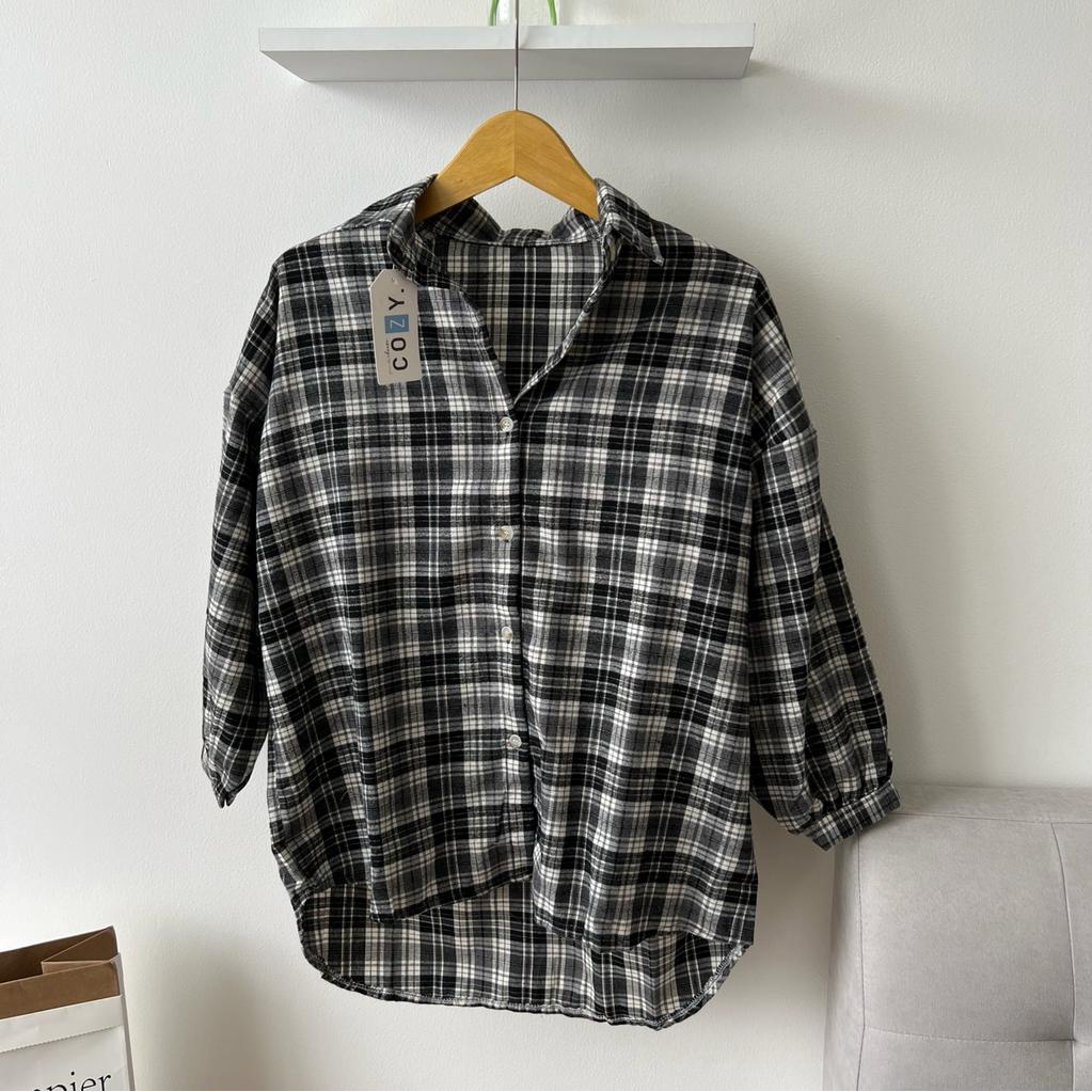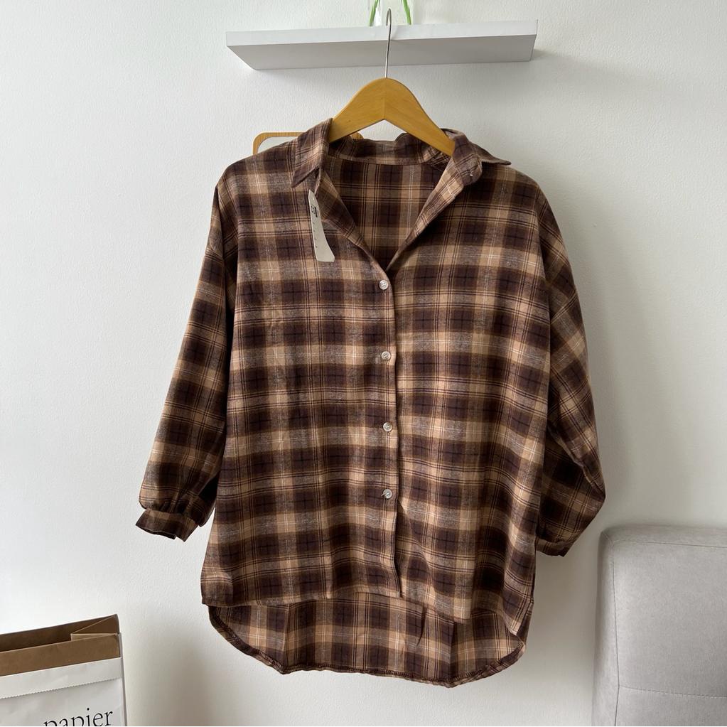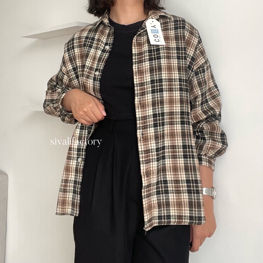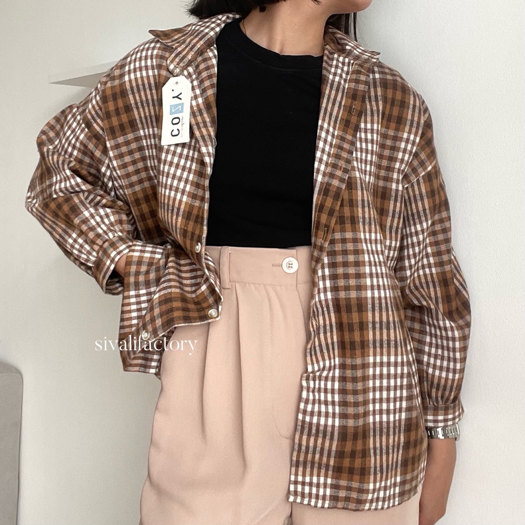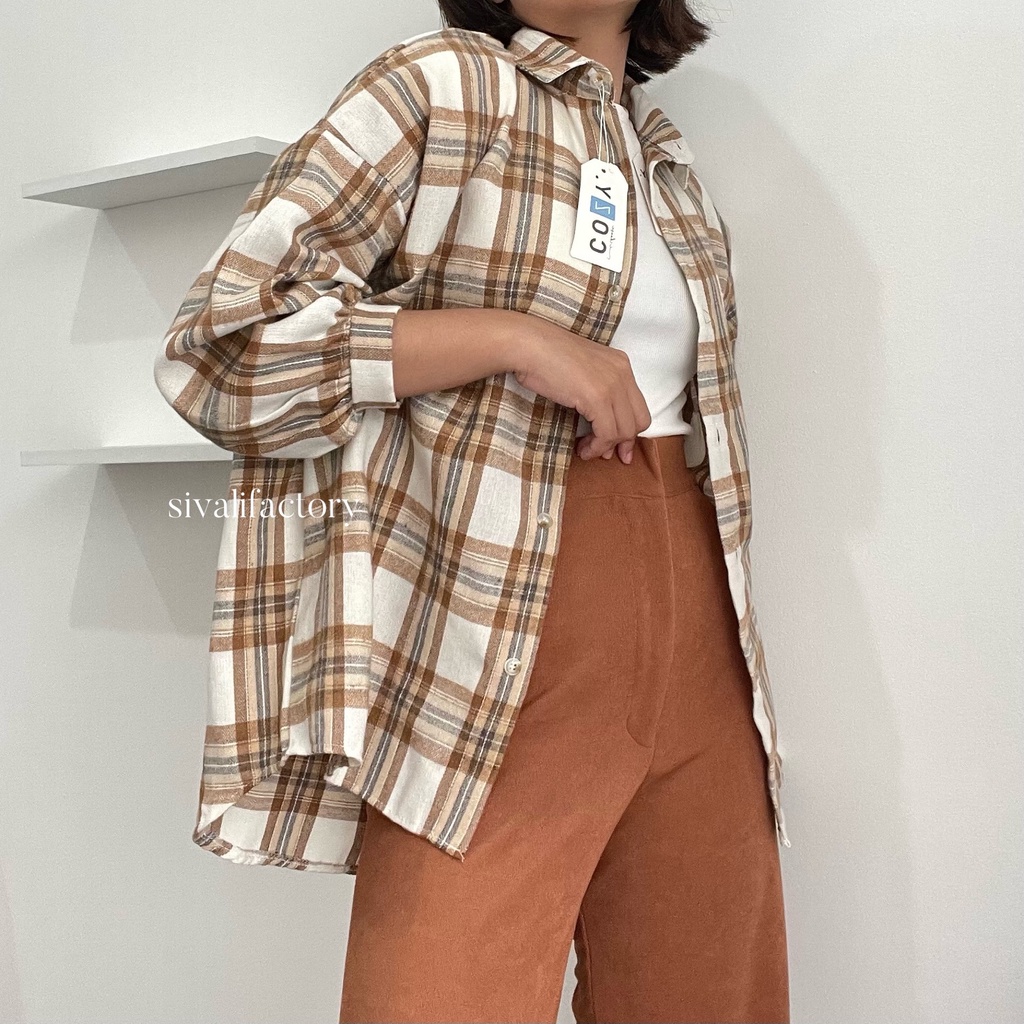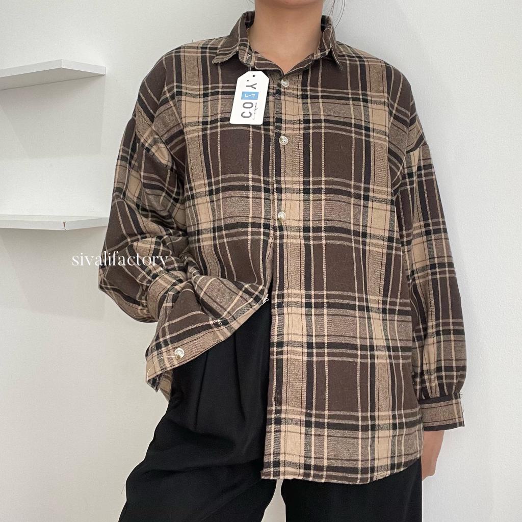 SIVALI Kemeja Flanel Blouse Kotak Tartan - Kotak Baju Korean Style Wanita Kemeja Wanita Casual