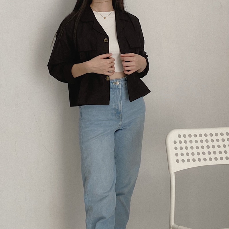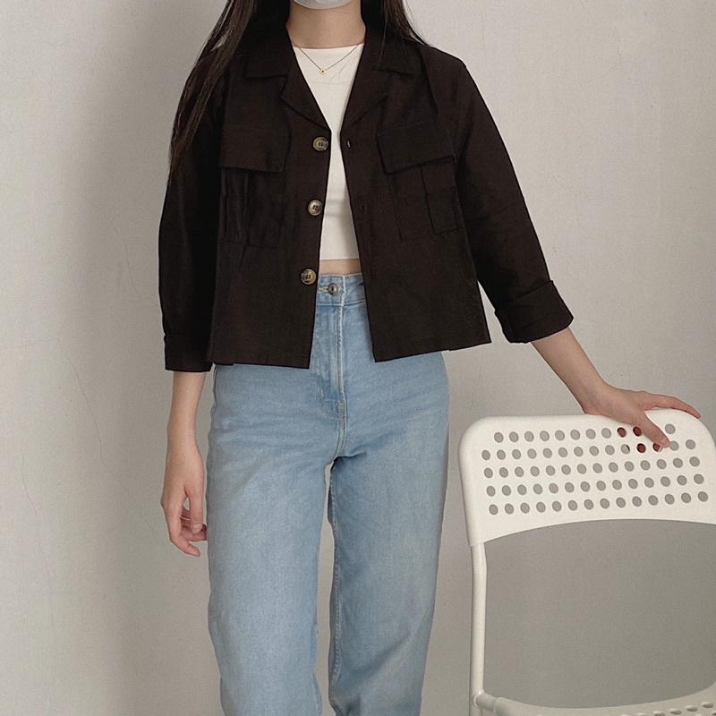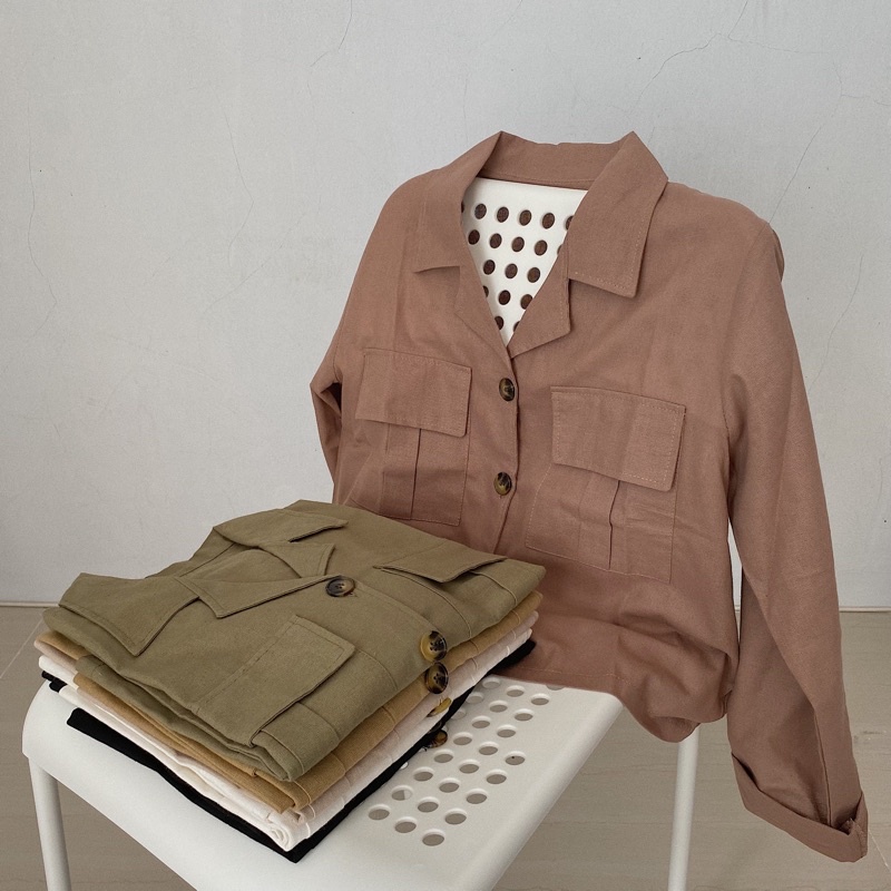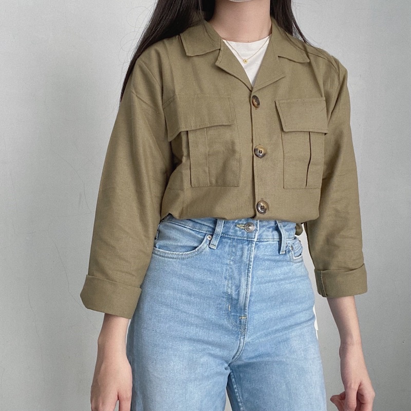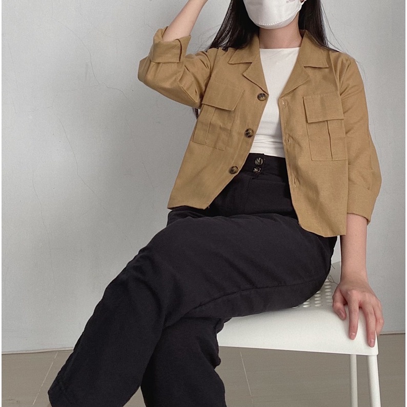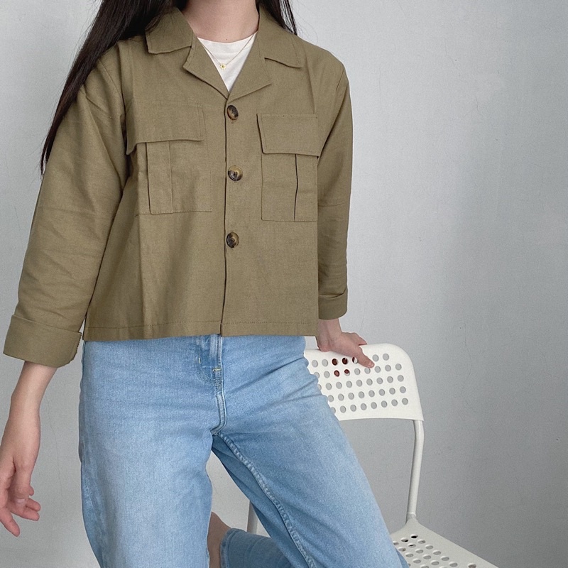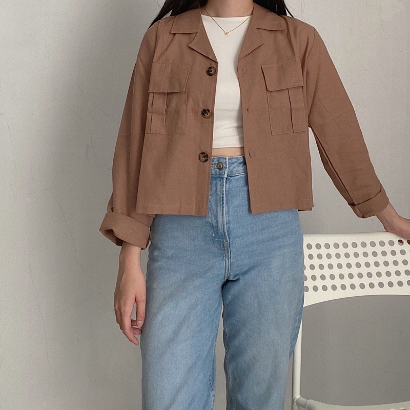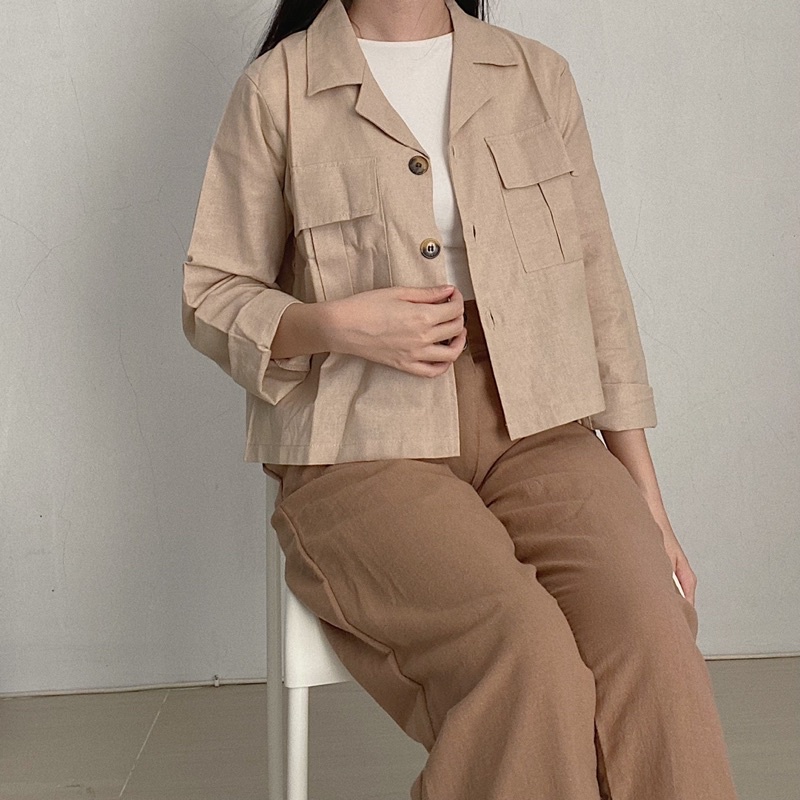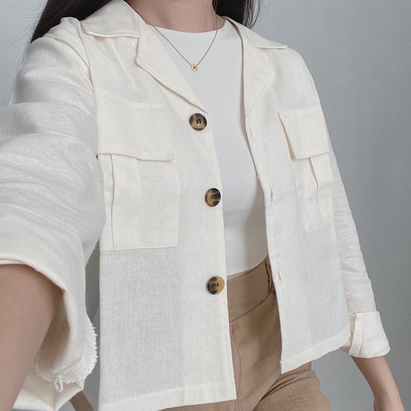 SIVALI Claryn Outer Linen Crop Version - Kemeja Linen - Atasan Wanita | Kardigan Saku 2289