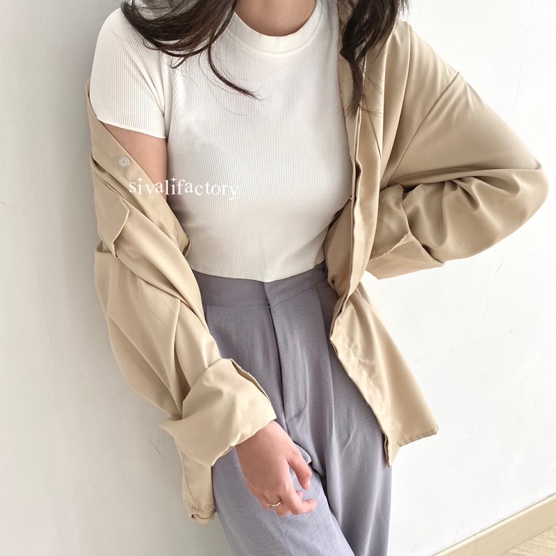 SIVALI Basic Crop Top | Knit Rib Tebal Premium - Kaos Wanita Crop Tee - Inner Knit | 2202