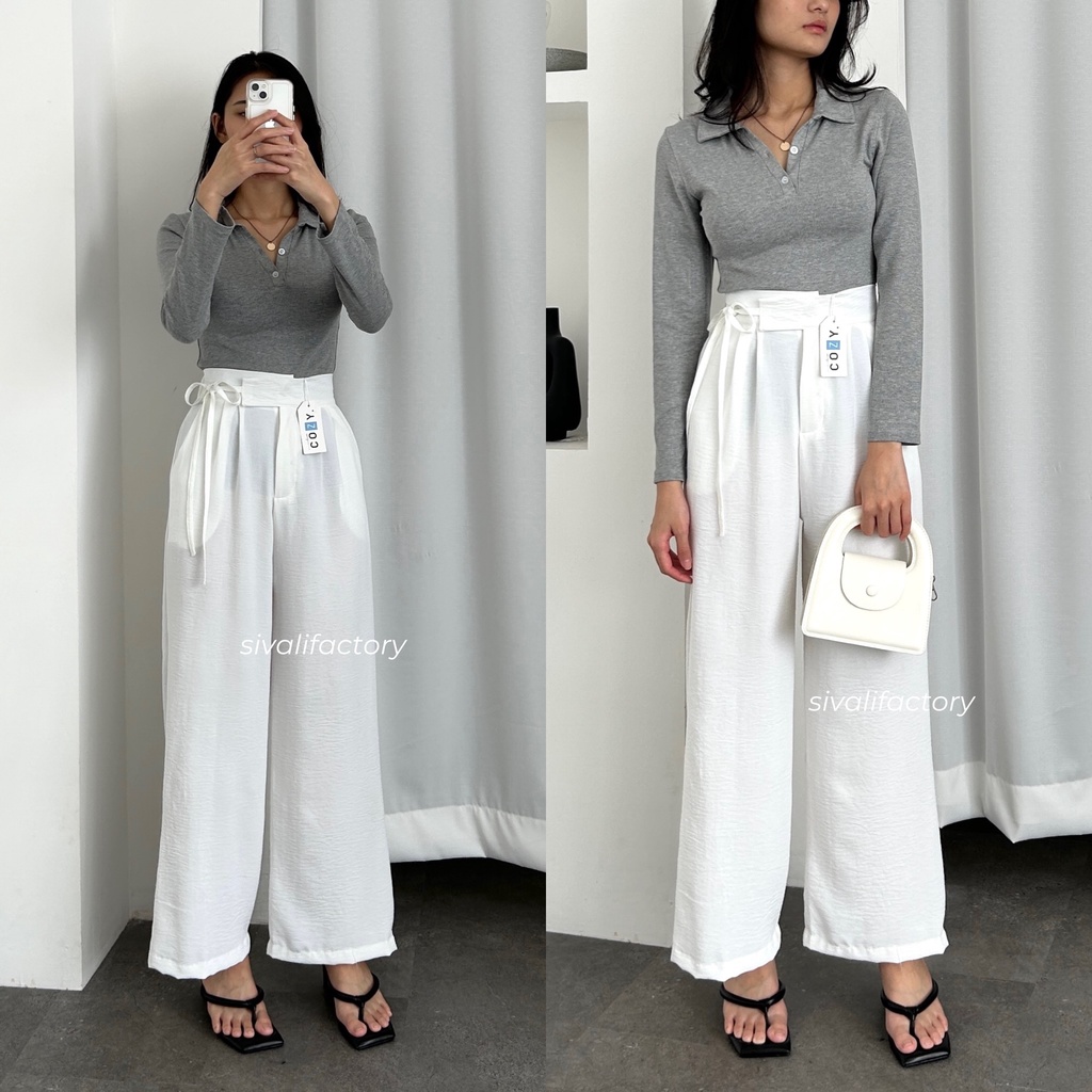 SIVALI Janelle Pants - Celana kulot Highwaist Crinkle Loose Pants - Cullote Pants | 3625