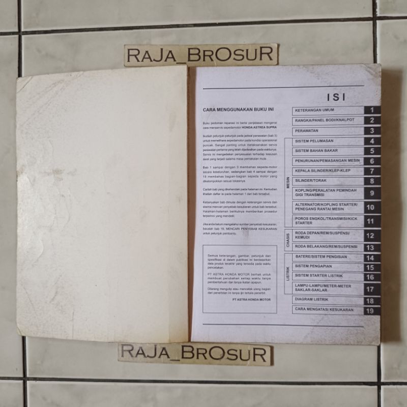 Buku pedoman reparasi/Manual book Honda Astrea Supra X KEV 1997-2004 ORI Original