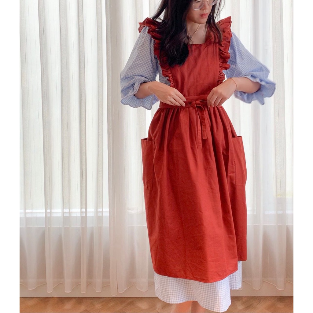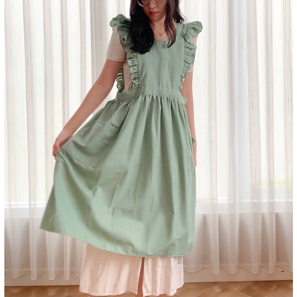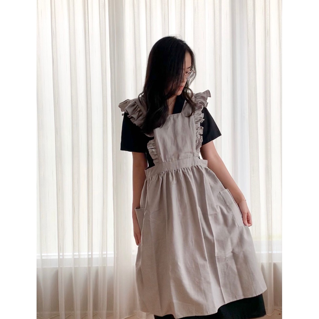 Elle Ruffle Apron / Apron Linen / Celemek Korea Jepang / Pinafore Cottagecore