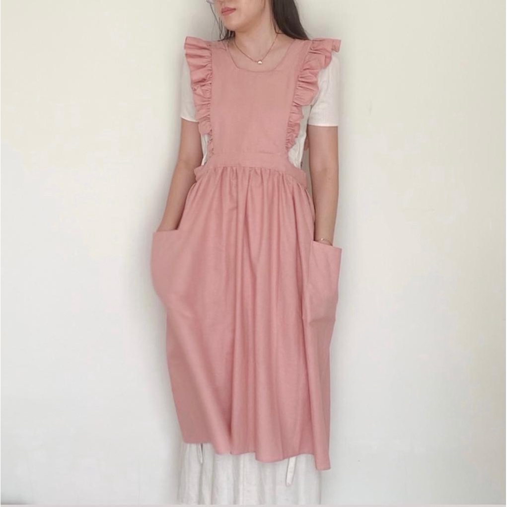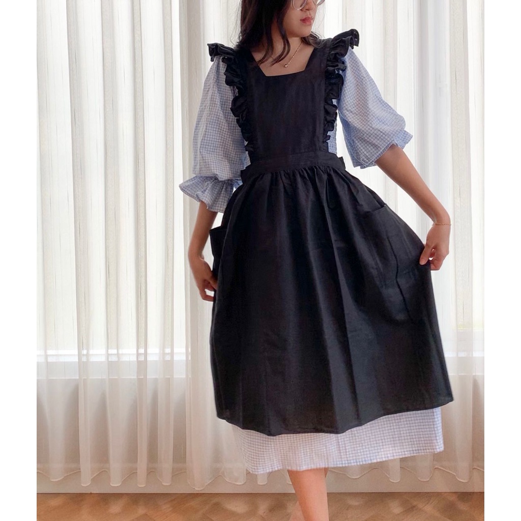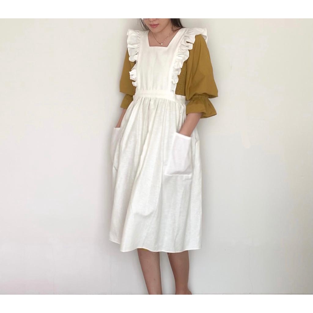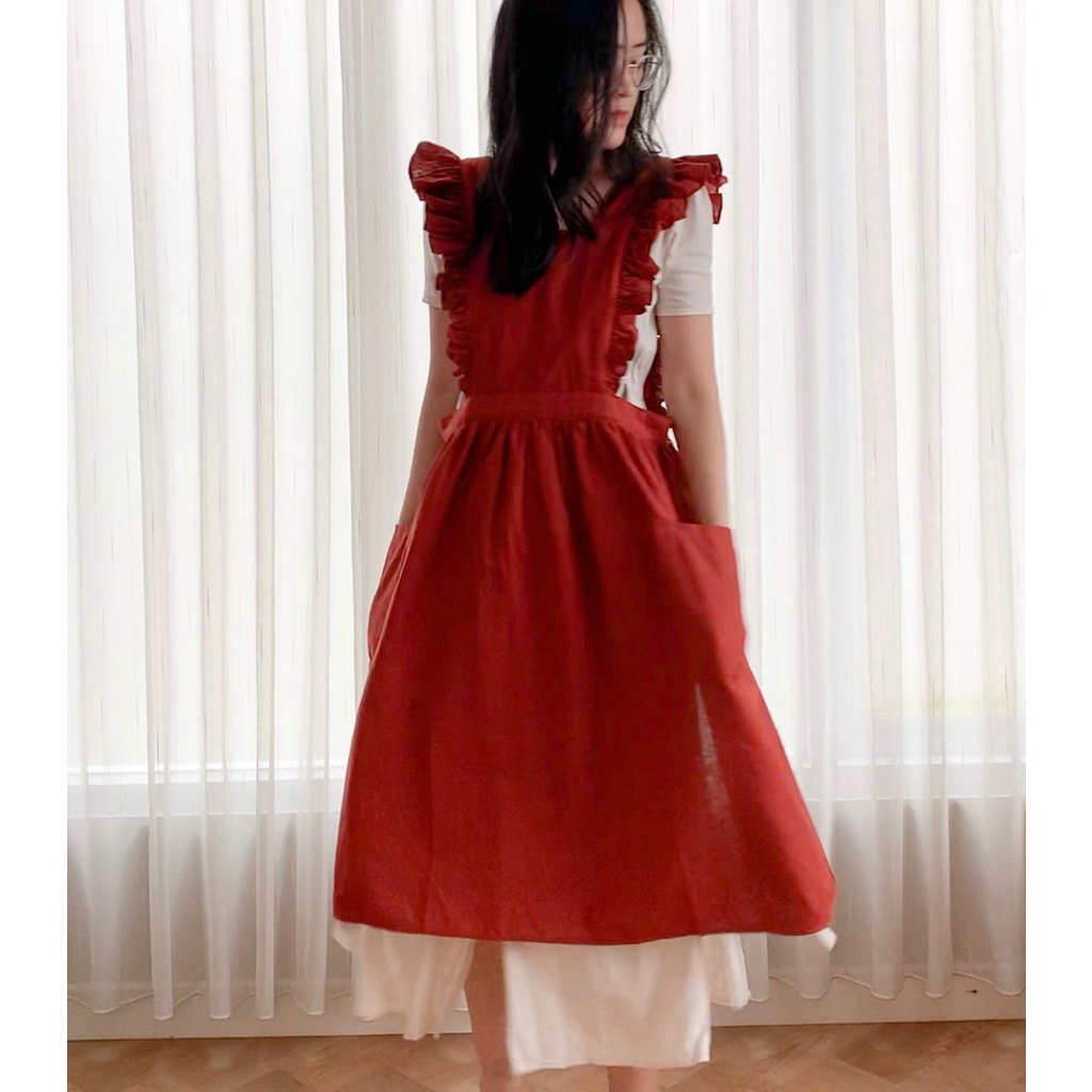 Elle Ruffle Apron / Apron Linen / Celemek Korea Jepang / Pinafore Cottagecore