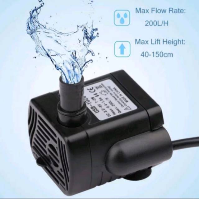 Pompa air celup mini USB dc 12v submersible pump HITAM