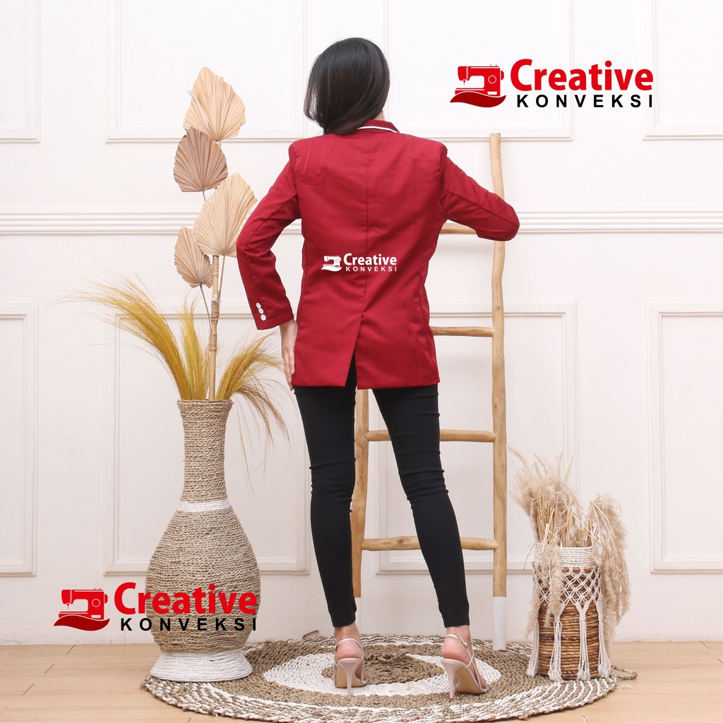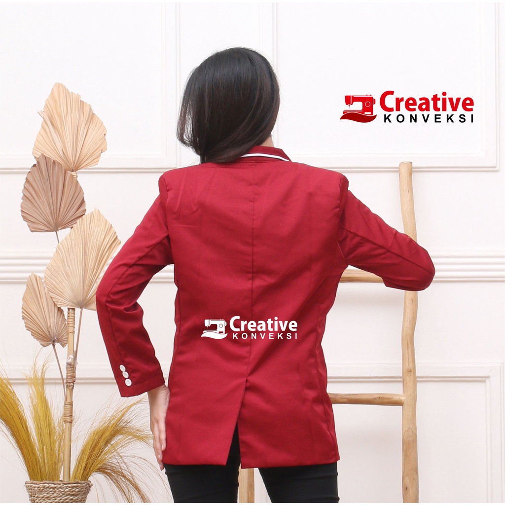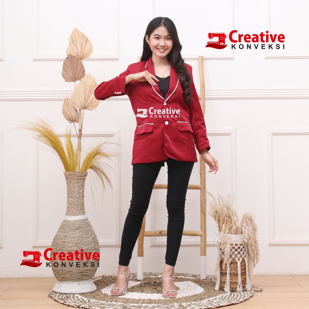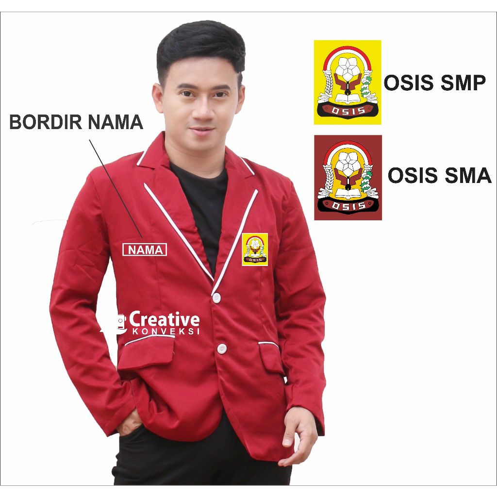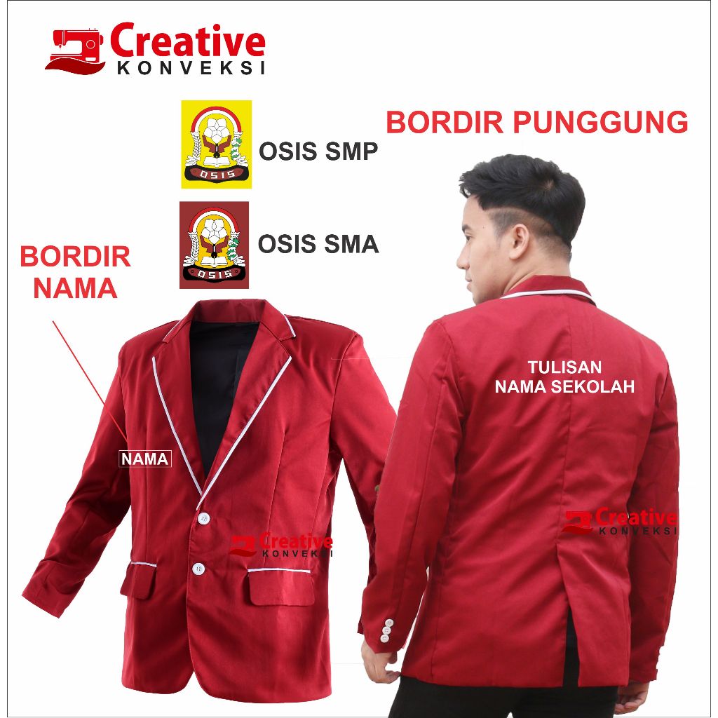 Jas Almamater sekolah warna merah maroon lis putih/ jas almamater bordir costom