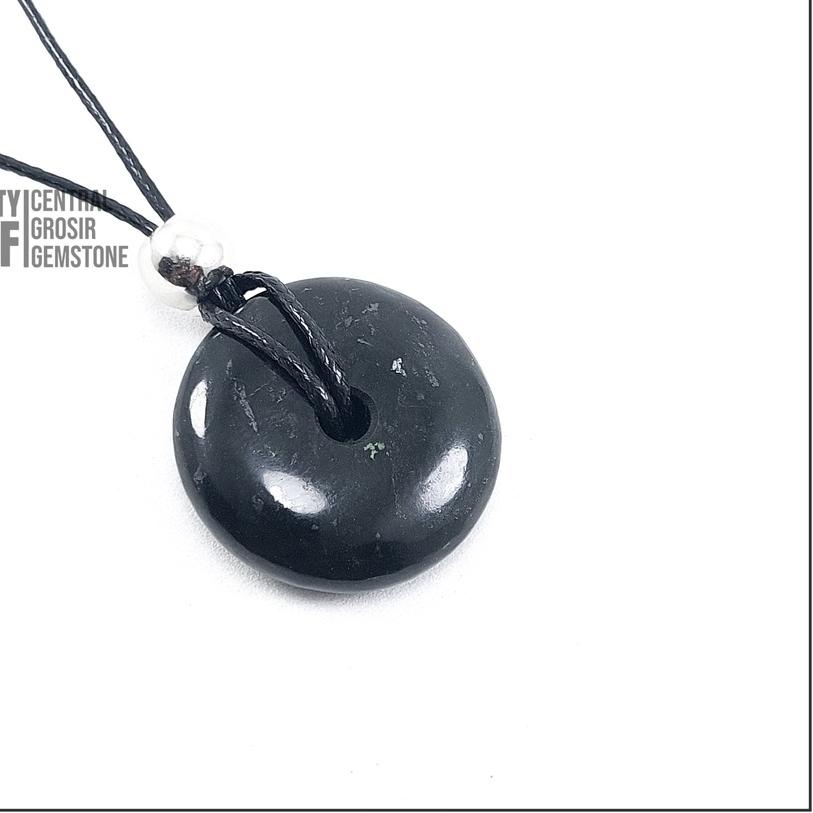 ♤ LIONTIN KOIN BATU GIOK HITAM BLACK JADE ASLI NATURAL PLUS KALUNG ☞