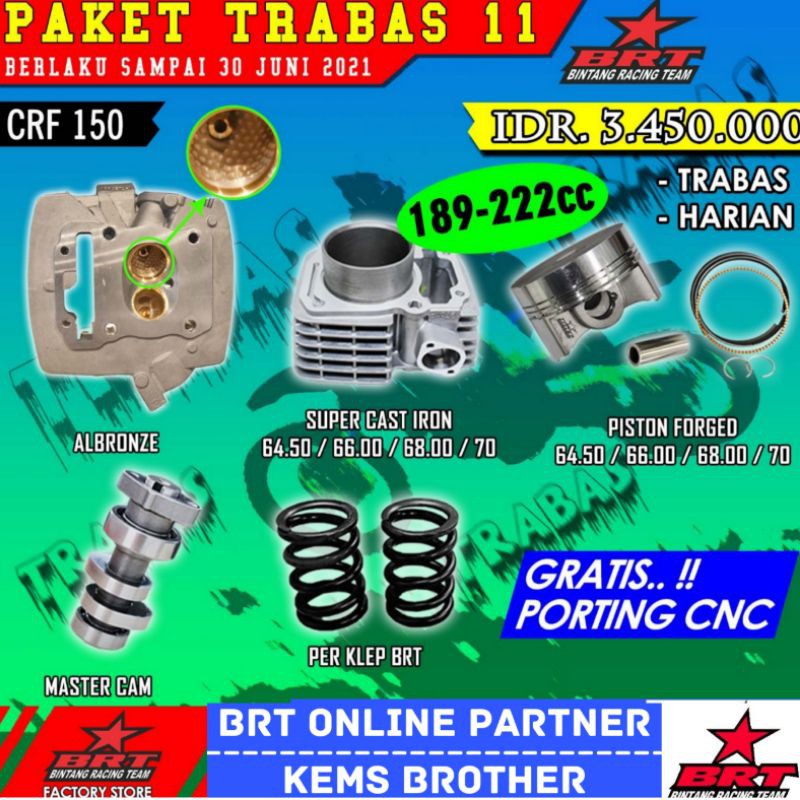 PAKET TRABAS BRT CRF 198 CC ATAU 210 CC ORIGINAL BRT ( head blok noken as per klep )