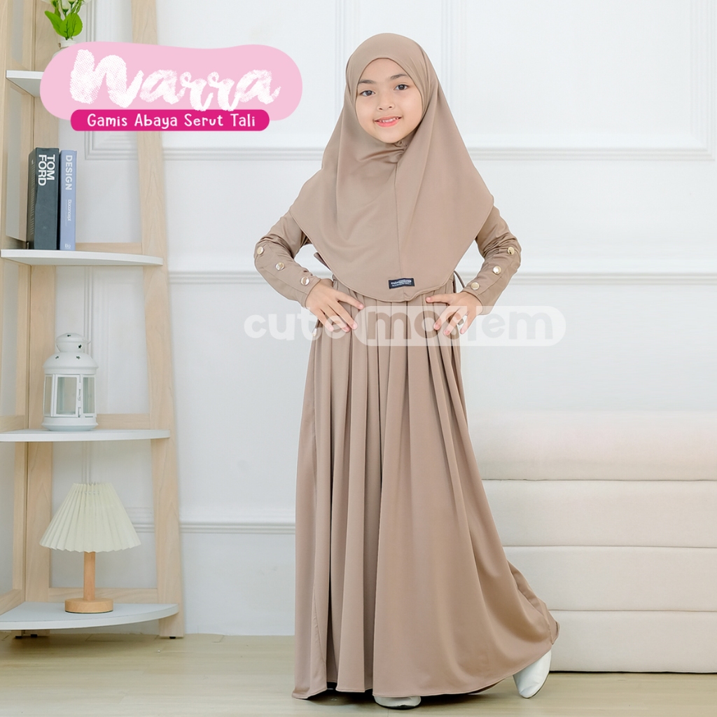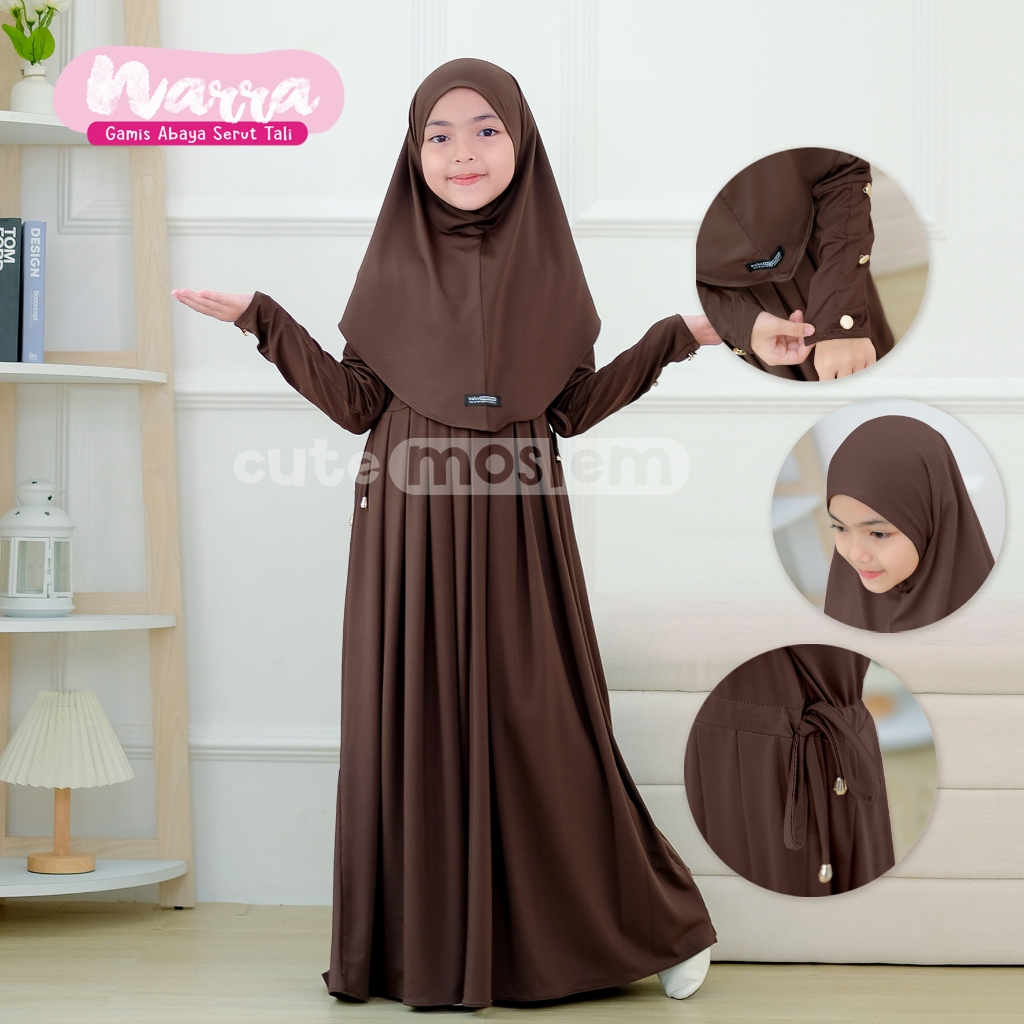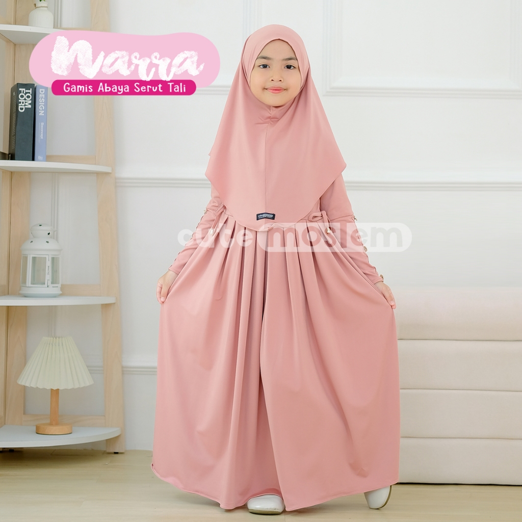Cutemoslem Narra-Gamis Set Jilbab Gamis Abaya Anak Inara Serut Pinggang Jersey Lembut Adem Usia 0-4 Tahun