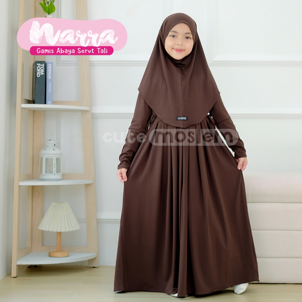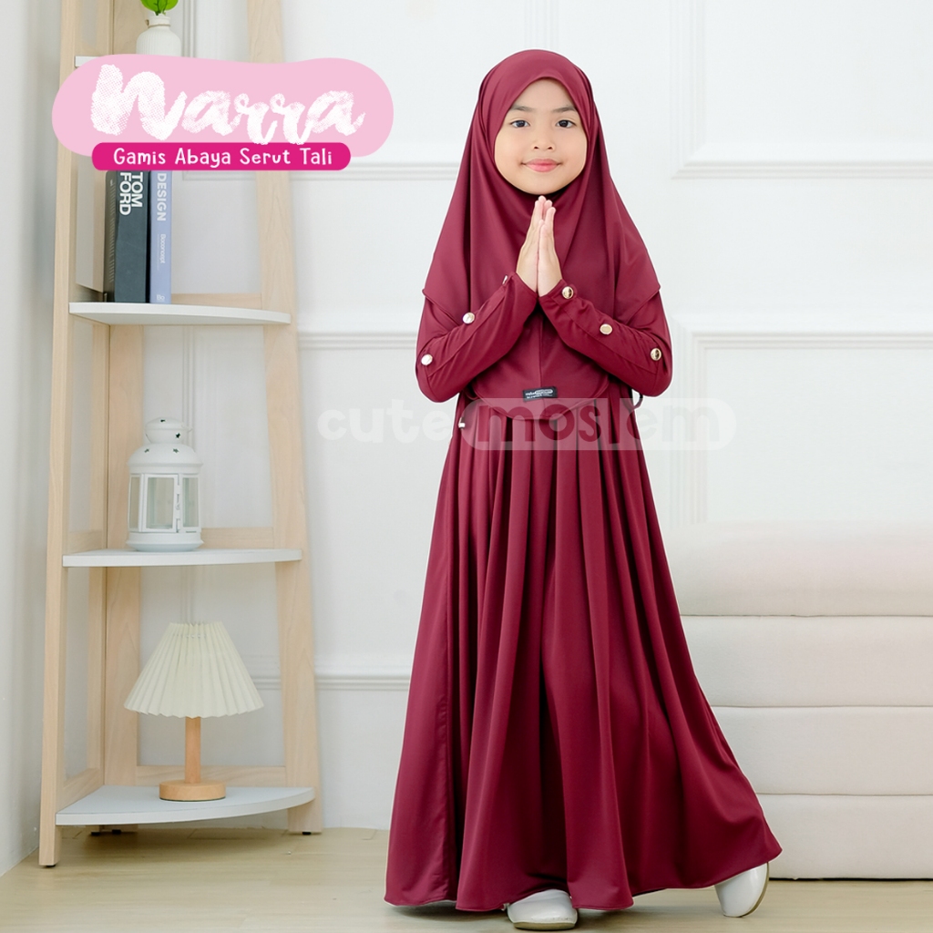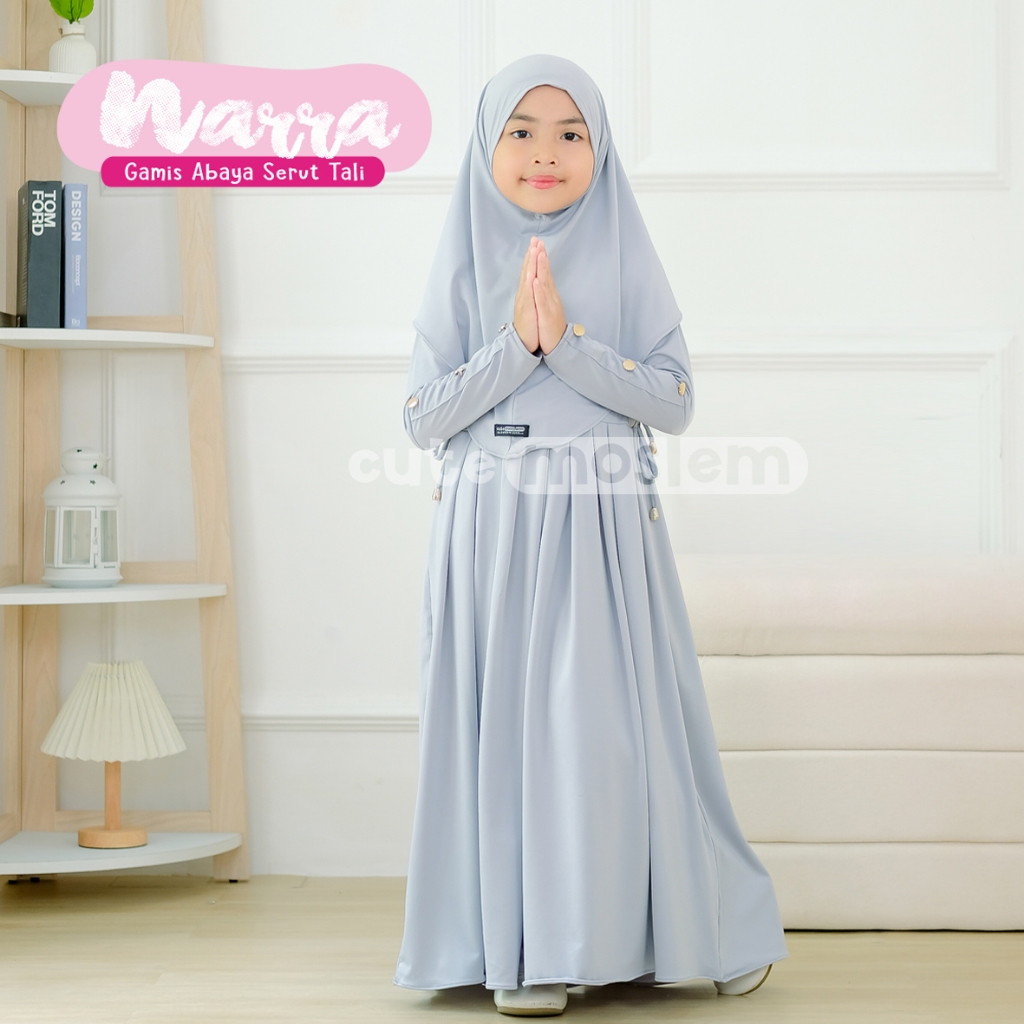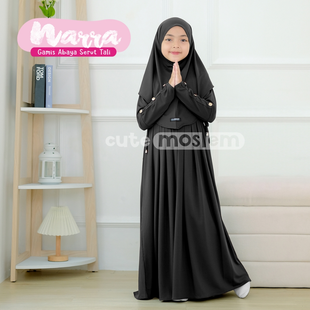 Cutemoslem Narra-Gamis Set Jilbab Gamis Abaya Anak Inara Serut Pinggang Jersey Lembut Adem Usia 0-4 Tahun