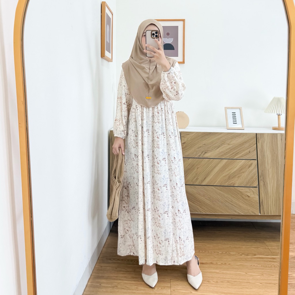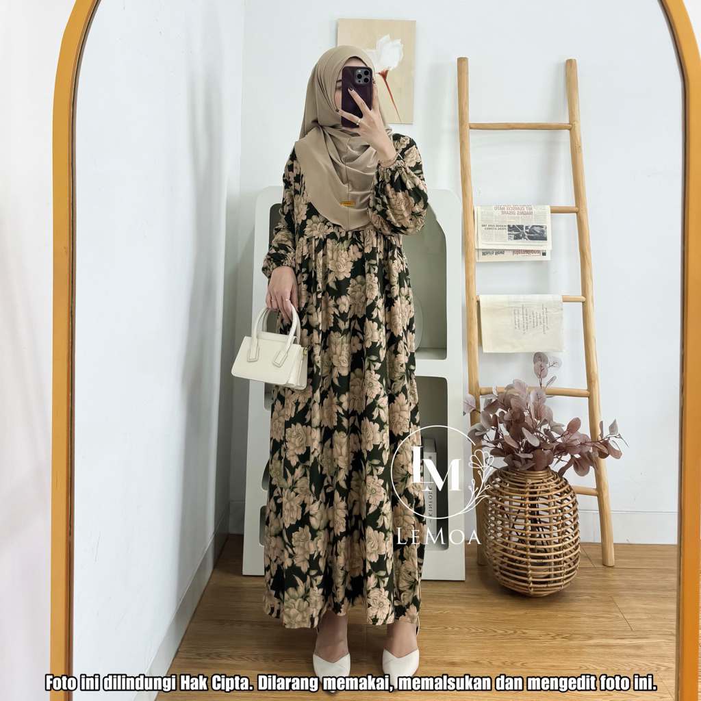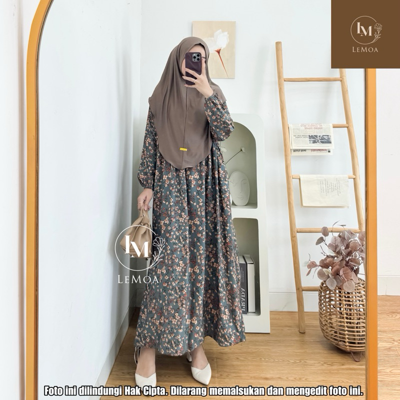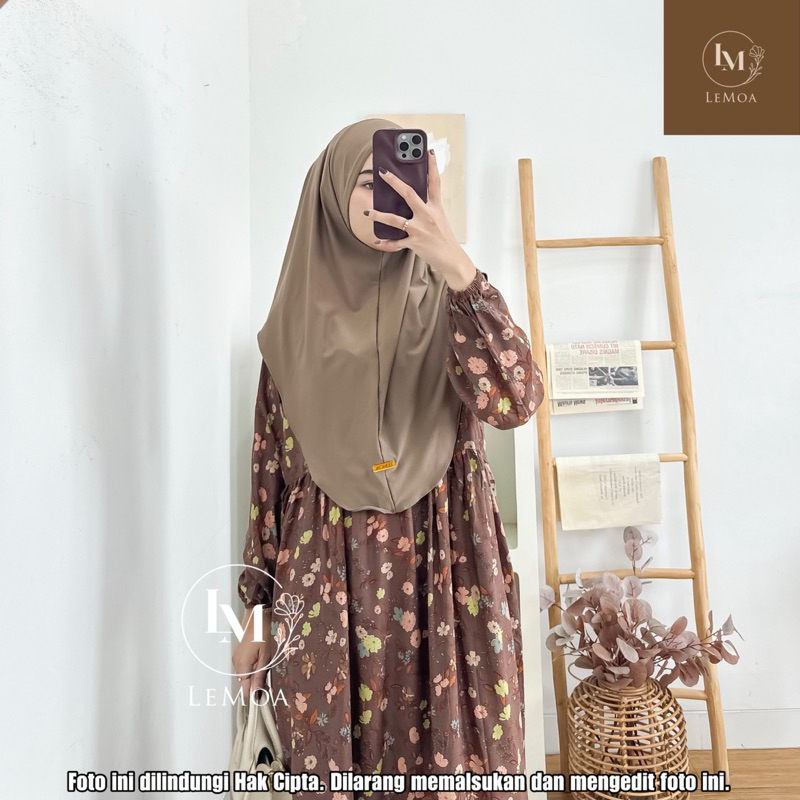 Gamis Qiana Set Hijab By Lemoa Panjang 135cm Bahan Rayon Viscose