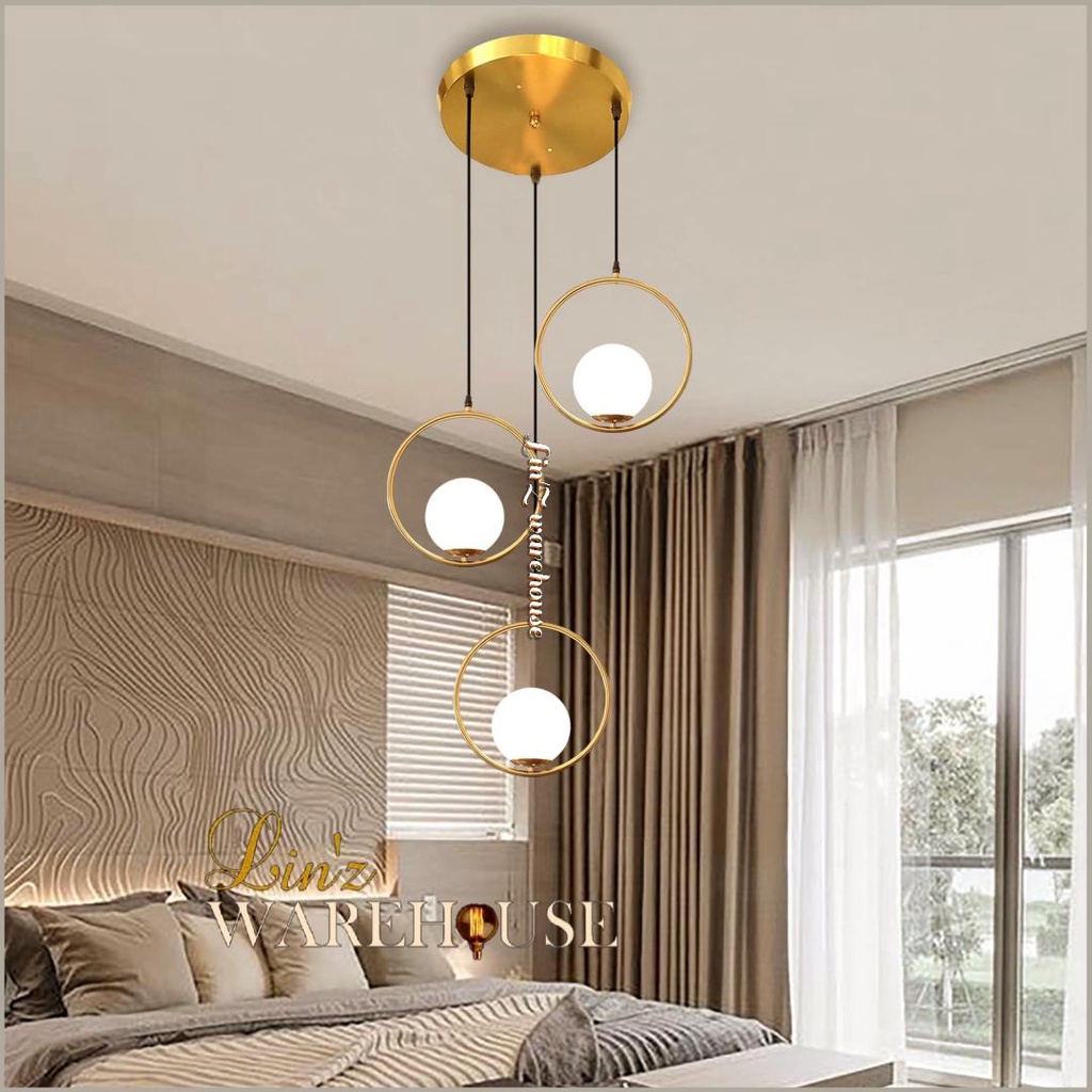 Lampu gantung MODERN 3 ARMS GOLD MOON GLASS BALL pendant light