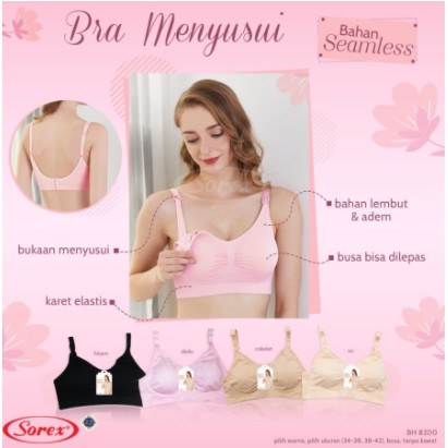 SOREX BH Bra Menyusui Maternity 8200 Model Sport Wanita Ibu Hamil Kait 3 Setara Cup B Busa Sedang Tanpa kawat seamless nyaman ibu hamil 8200