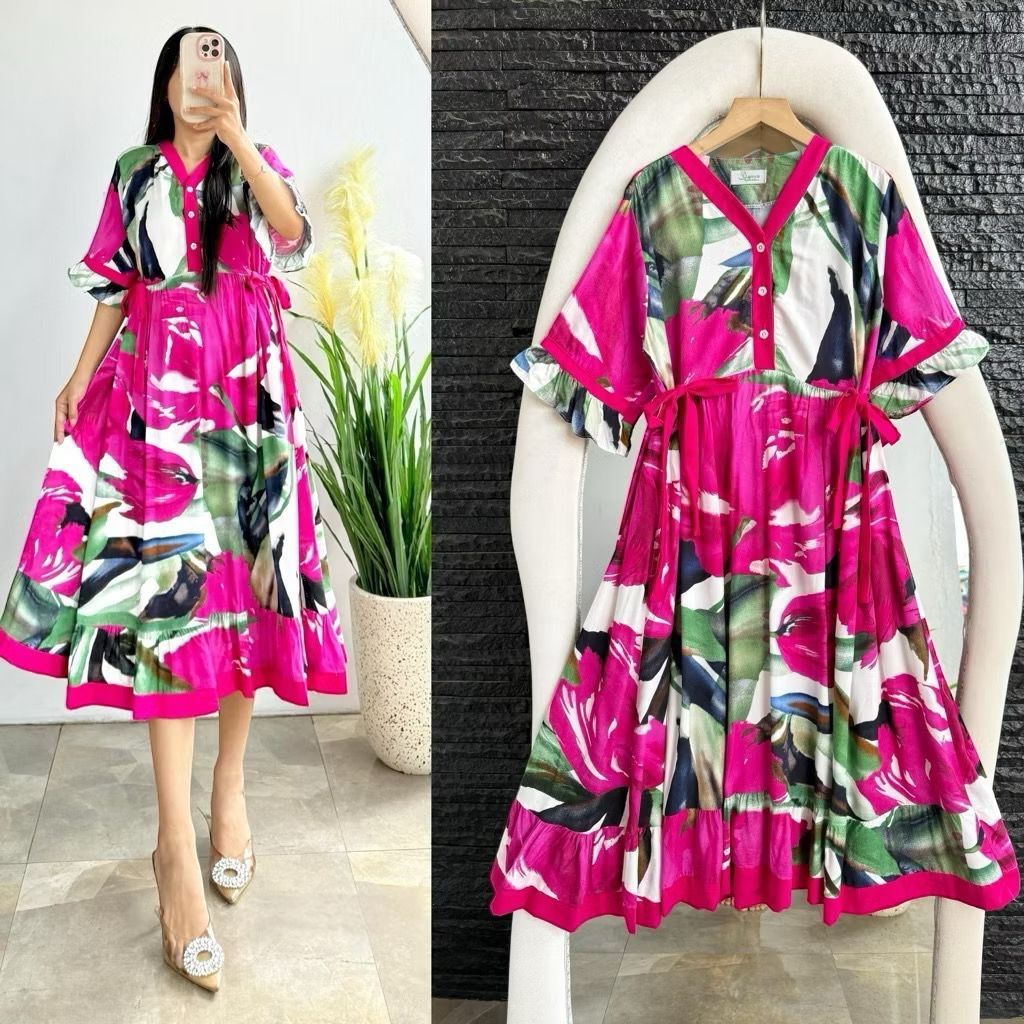 FELISA ARA - DRESS RAYON LD 110CM BUSUI FRIENDLY // MIDI DRESS RAYON MOTIF TERBARU // DASTER RAYON KEKINIAN VIRAL //FMCOLL