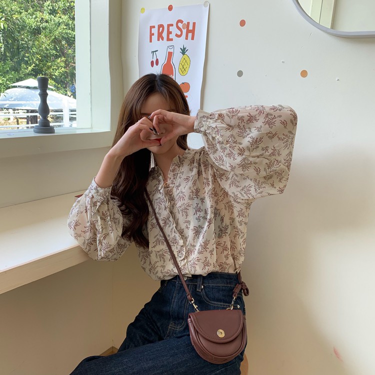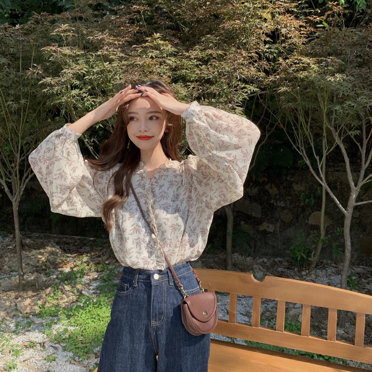 Atasan Korea motif bunga Tipis lengan panjang --- Nayra Floral Blouse [Ada Variasi Ready]
