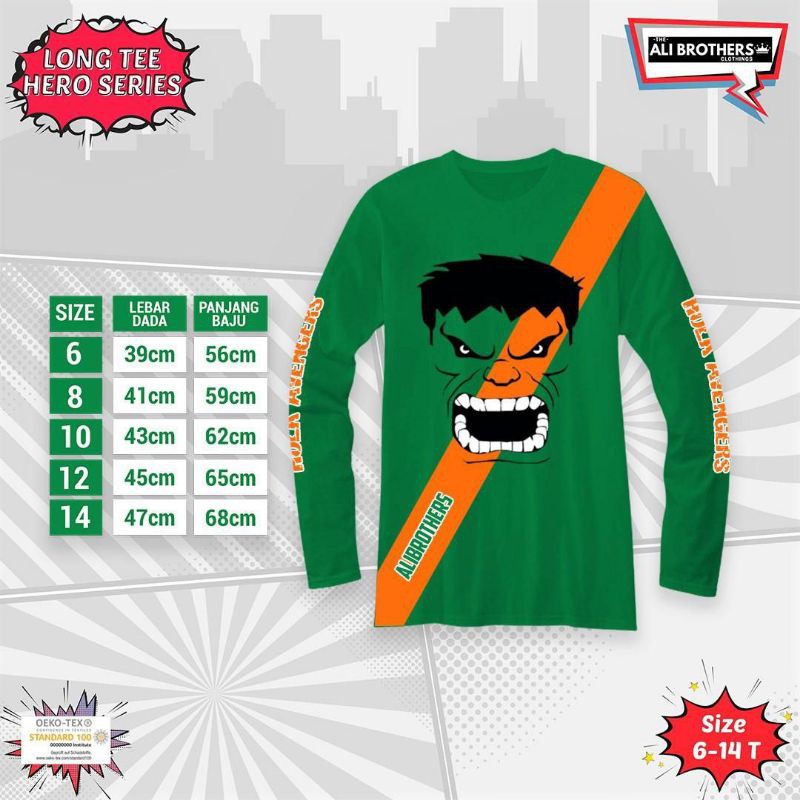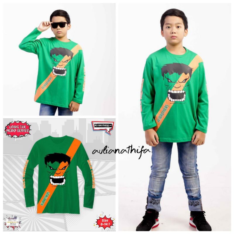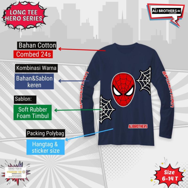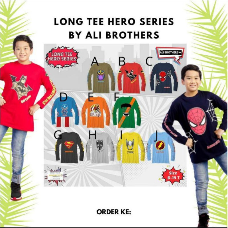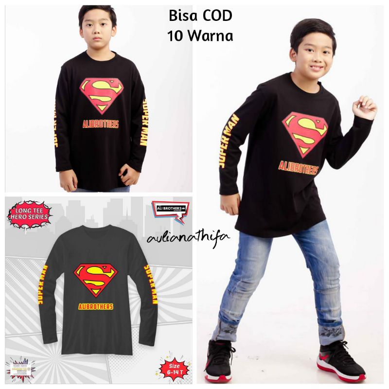 Kaos Lengan Panjang Anak Laki-laki sz 6-14 th Superhero Series by Ali Brothers LongSleeve Long Tee