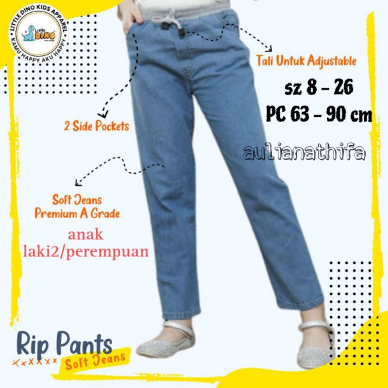 Celana Soft Jeans Panjang Anak Tanggung/Remaja Perempuan/Laki-laki usia 5th sd remaja sz 8-26 RIP Jeans Little Dino