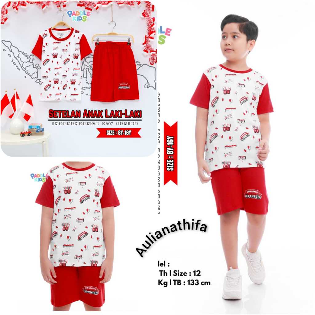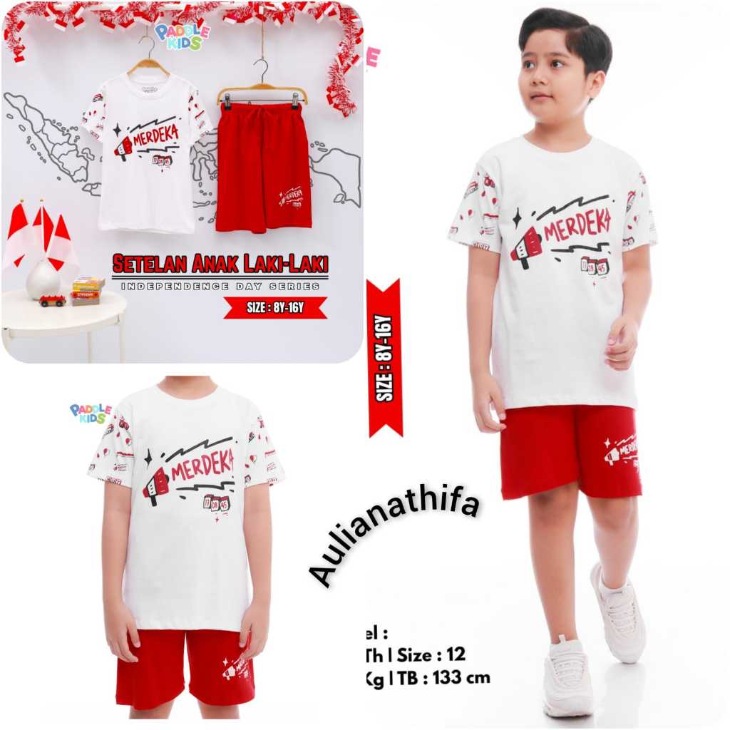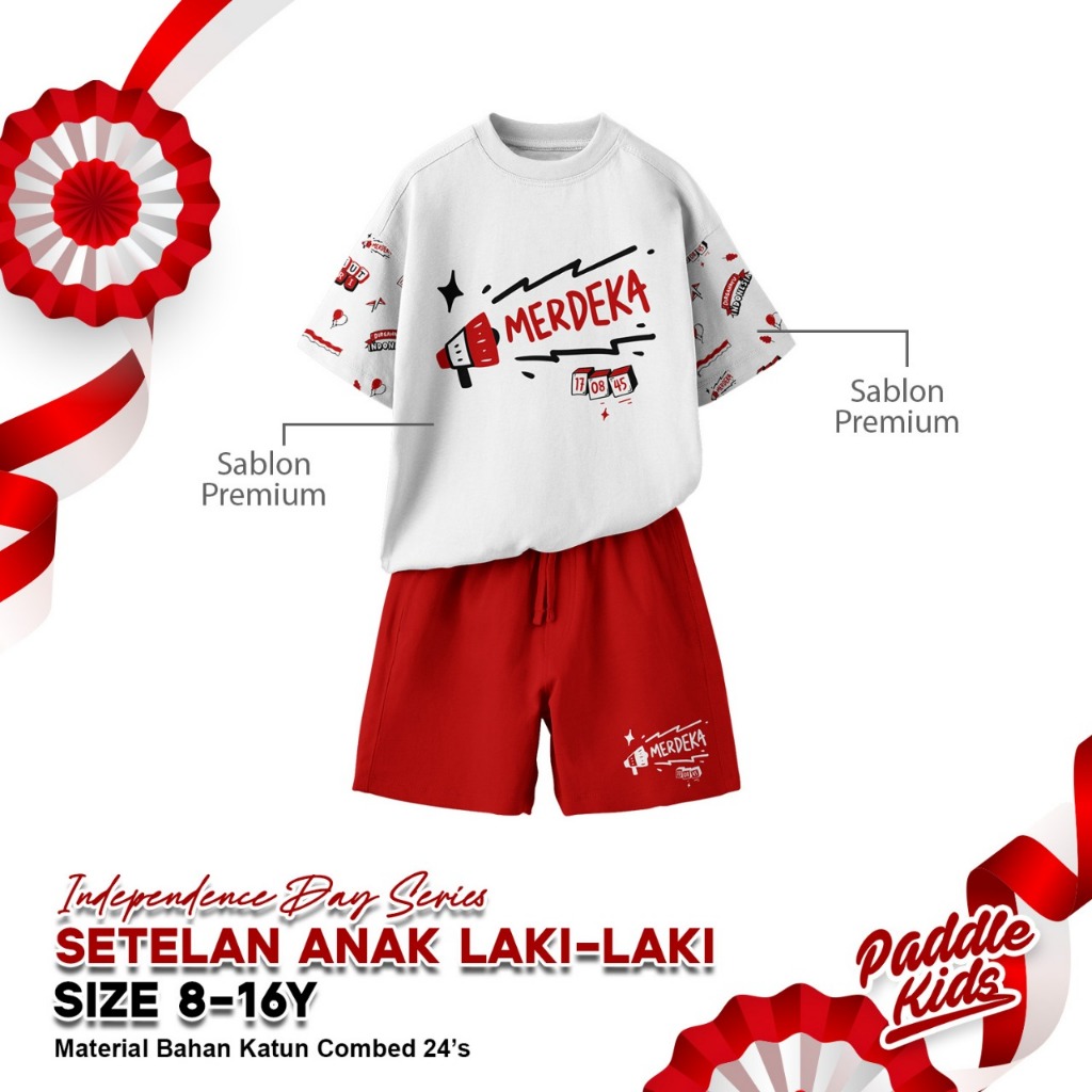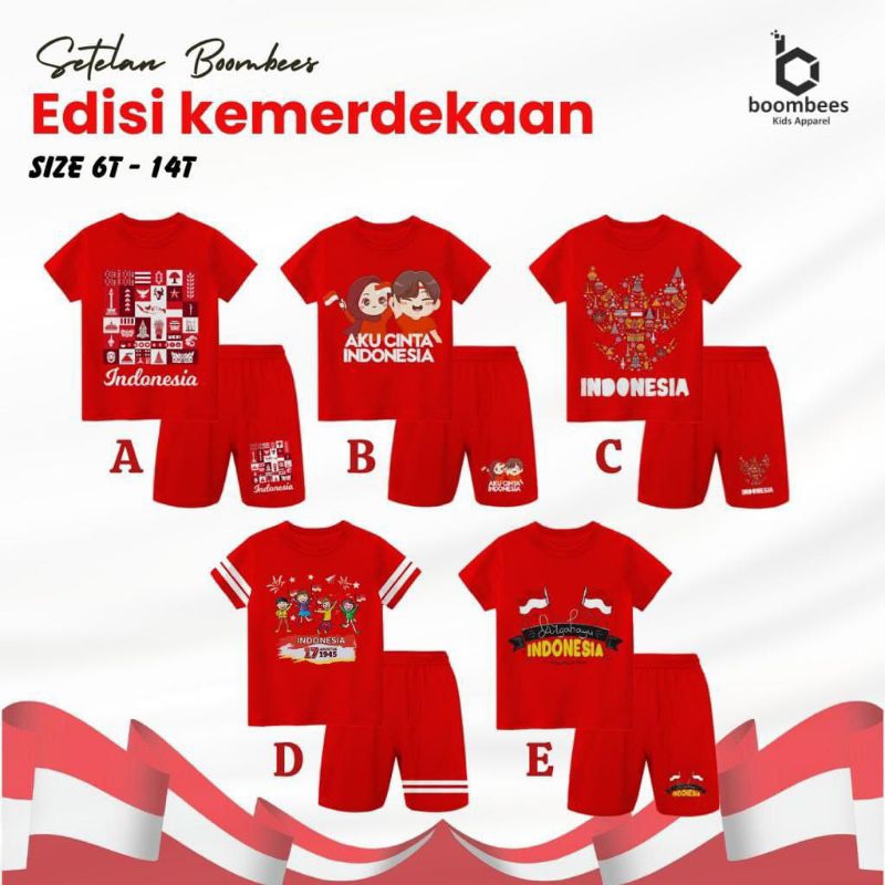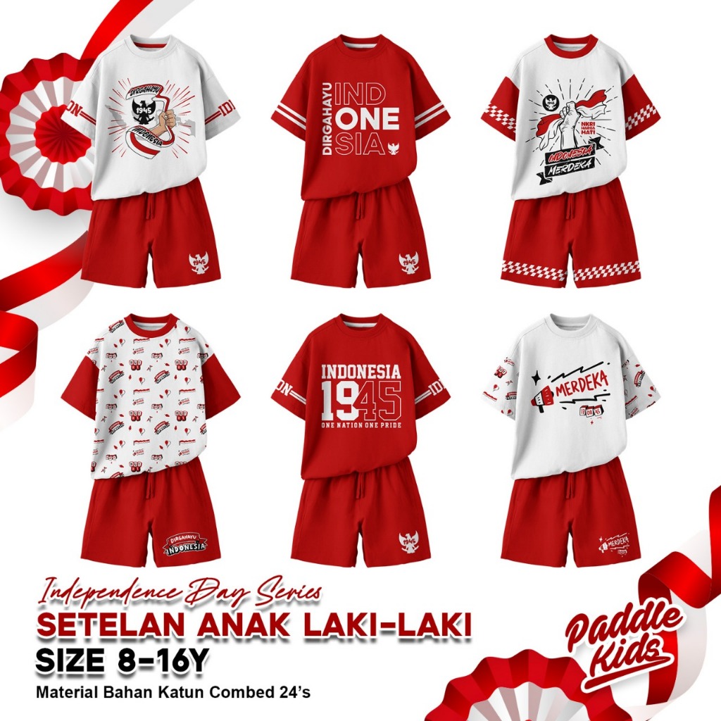 Baju Setelan Kaos Kemerdekaan Agustusan sz 6-16 Anak Laki-laki/Perempuan Paddlekids & Boombees