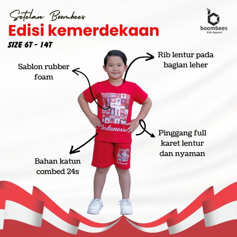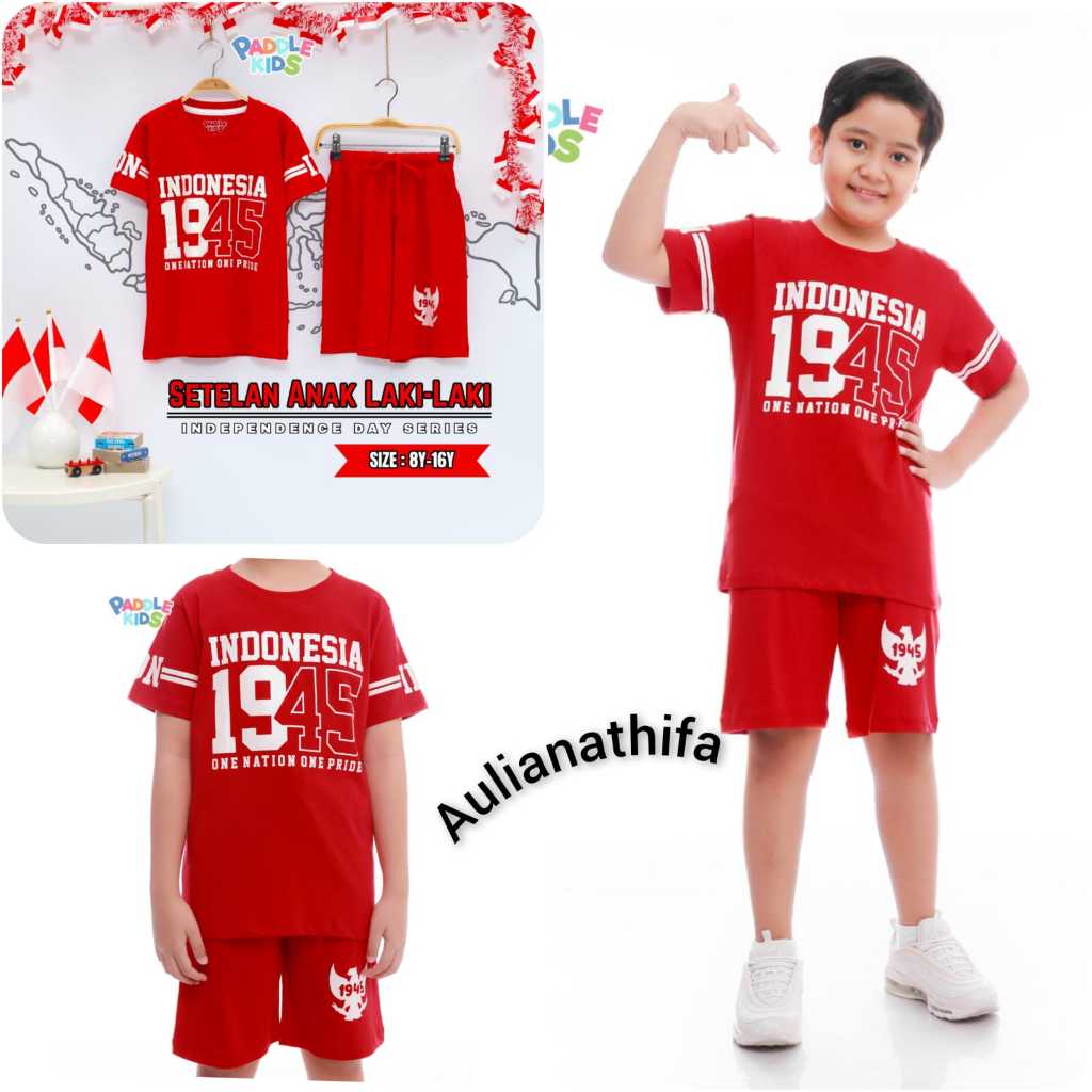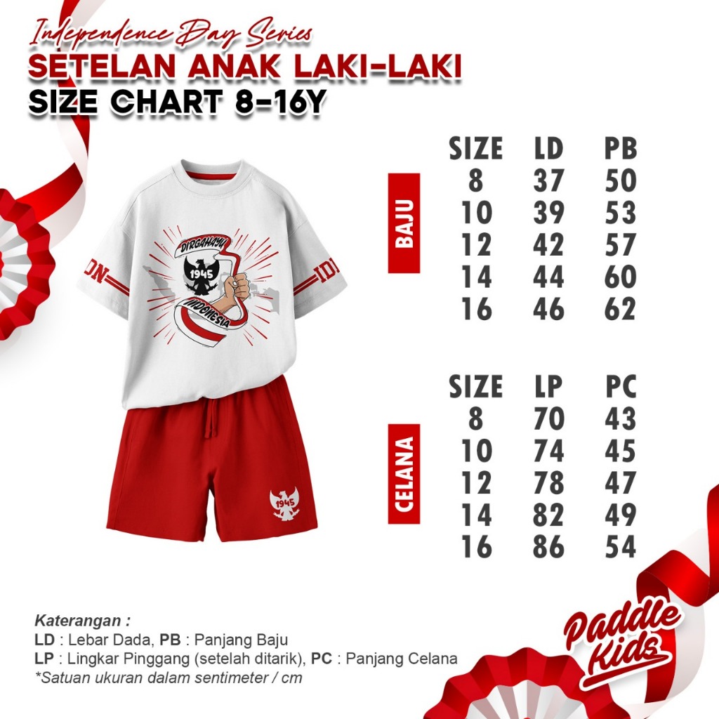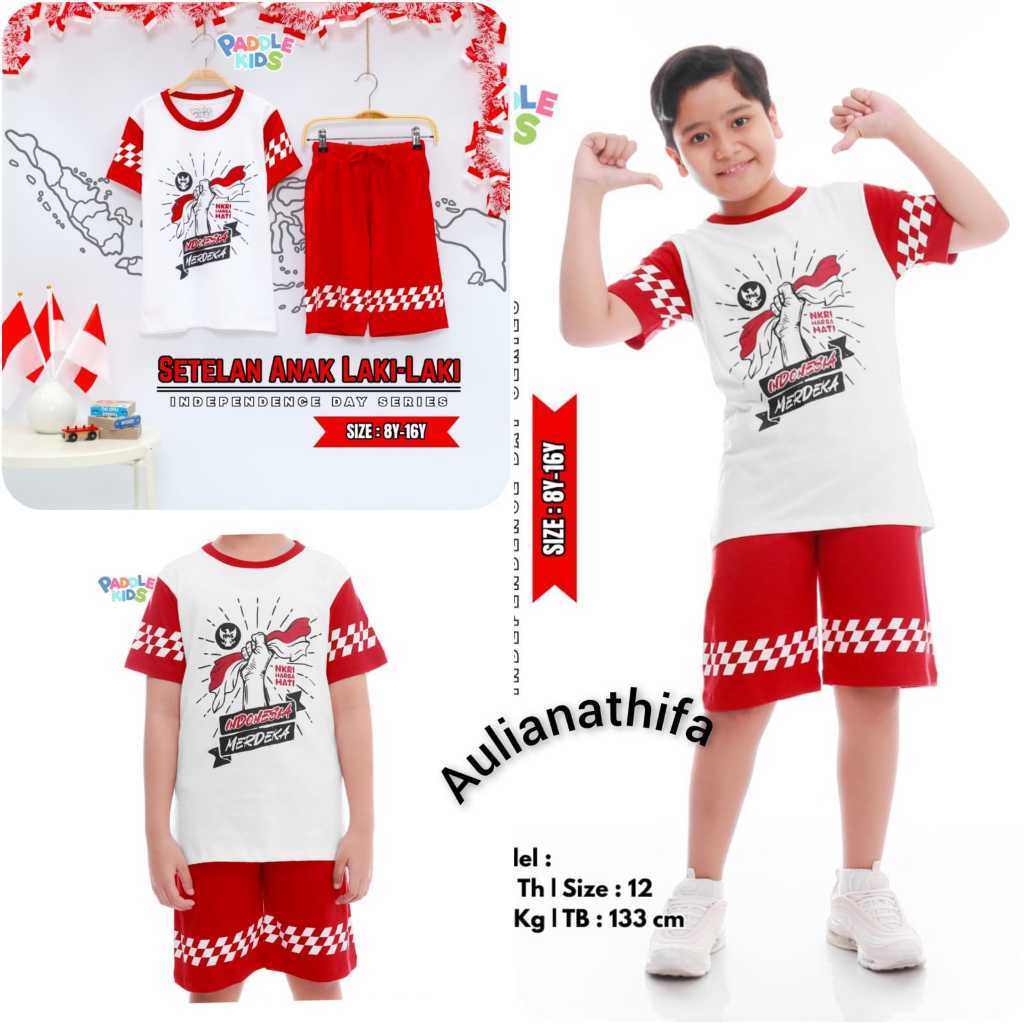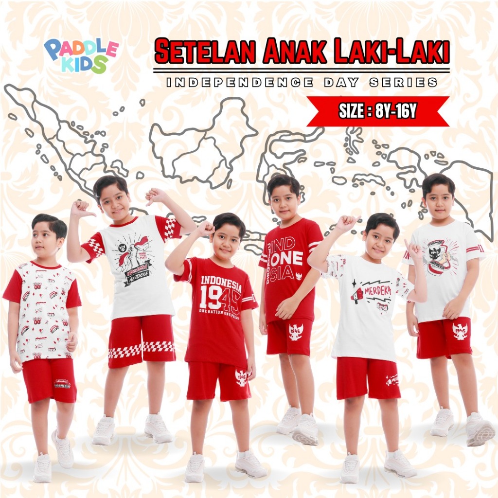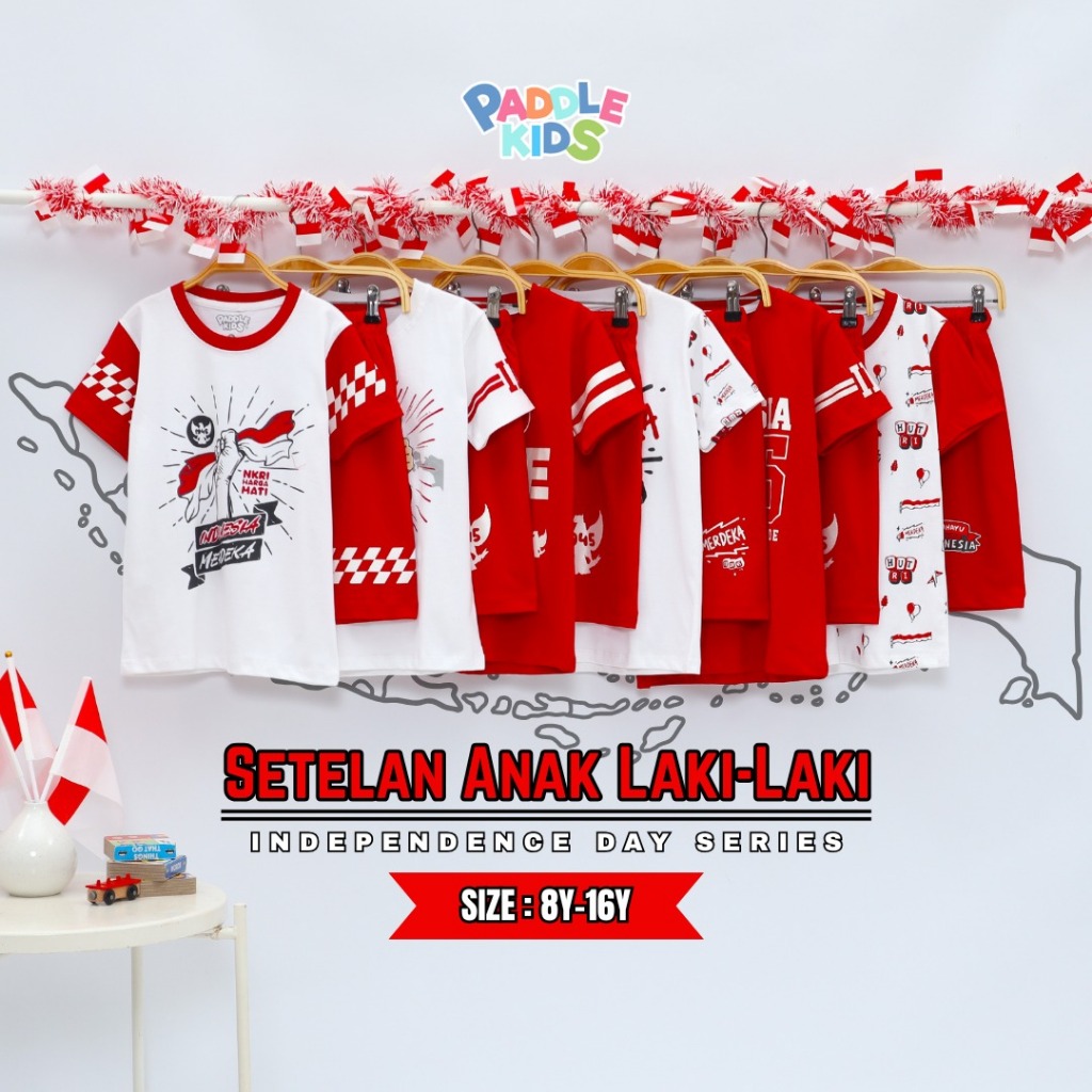 Baju Setelan Kaos Kemerdekaan Agustusan sz 6-16 Anak Laki-laki/Perempuan Paddlekids & Boombees