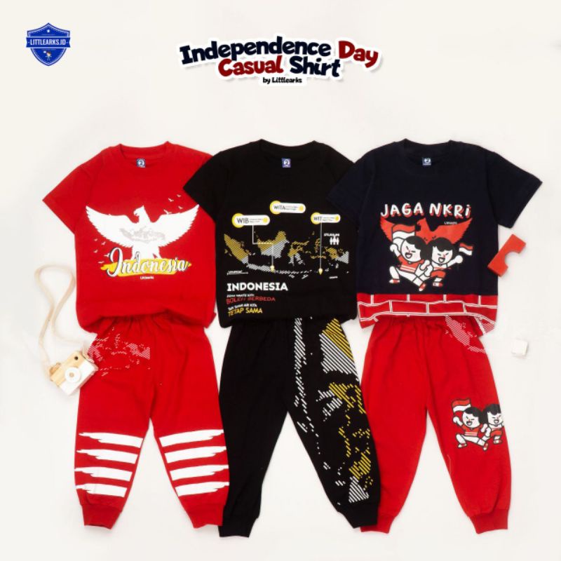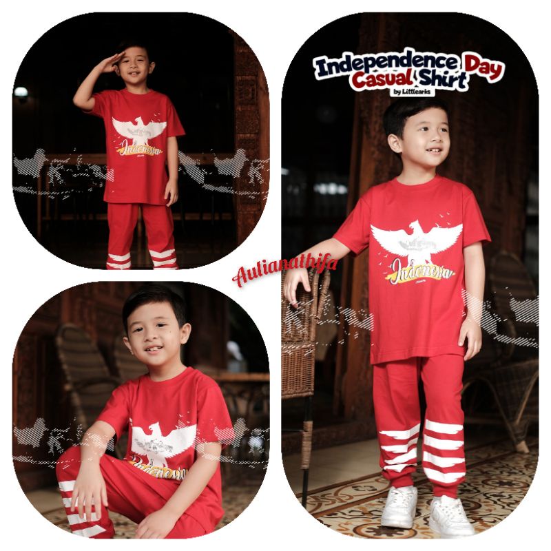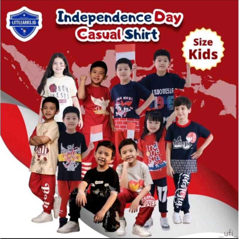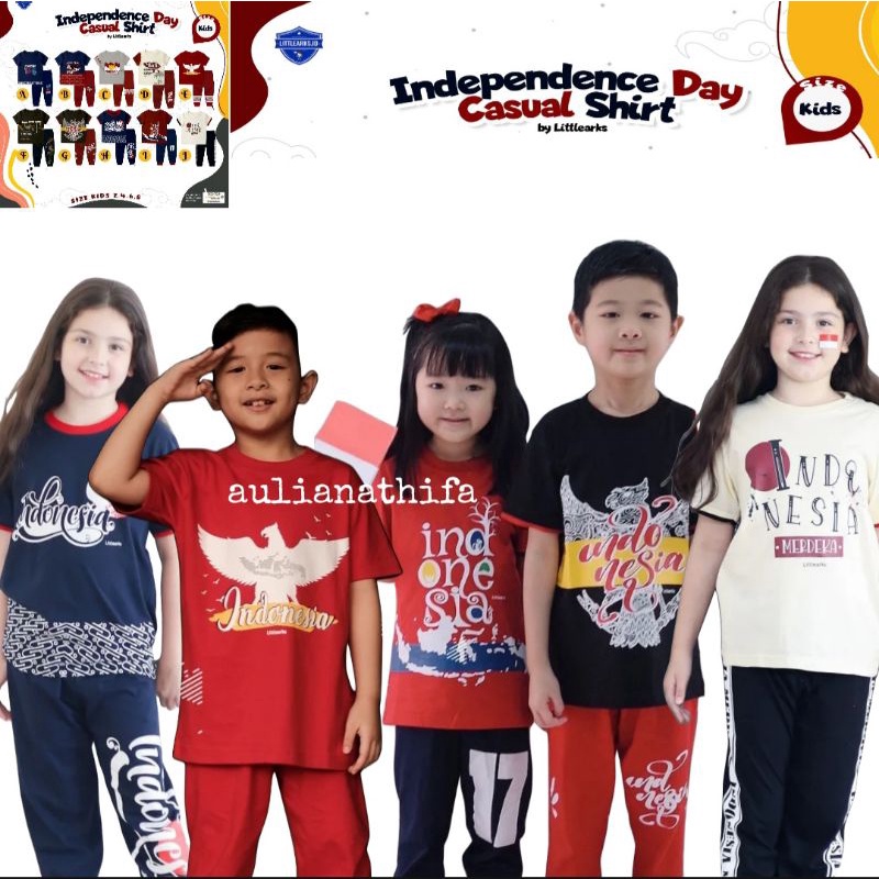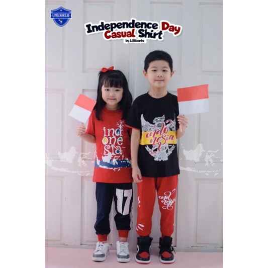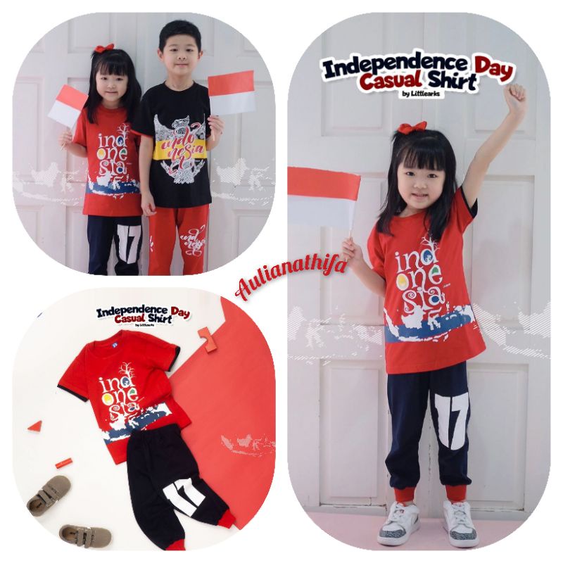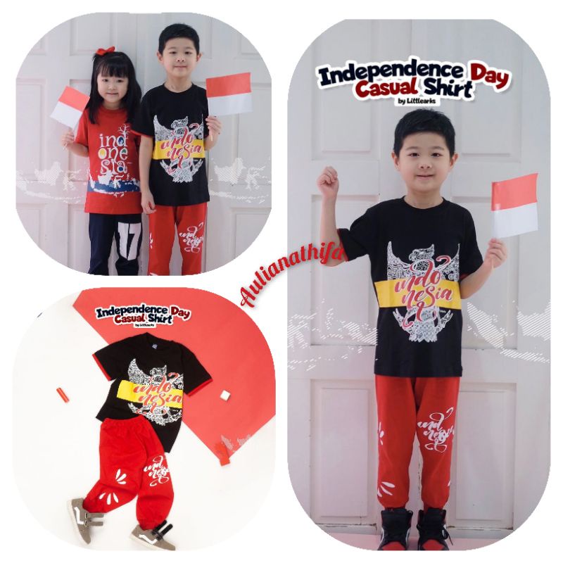 Independence Day Casual Shirt Baju Setelan Anak Tema Kemerdekaan Indonesia by Littlearks Laki-laki/Perempuan sz 2-8 th