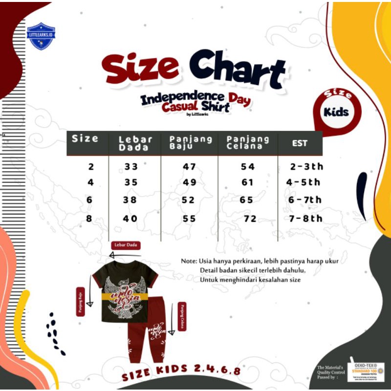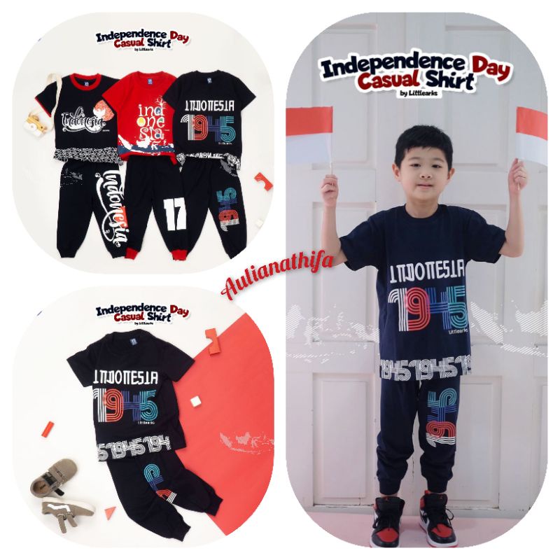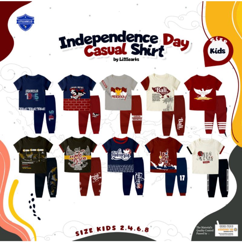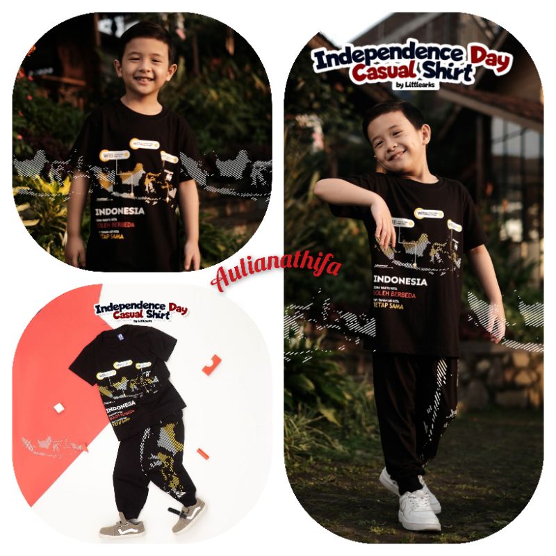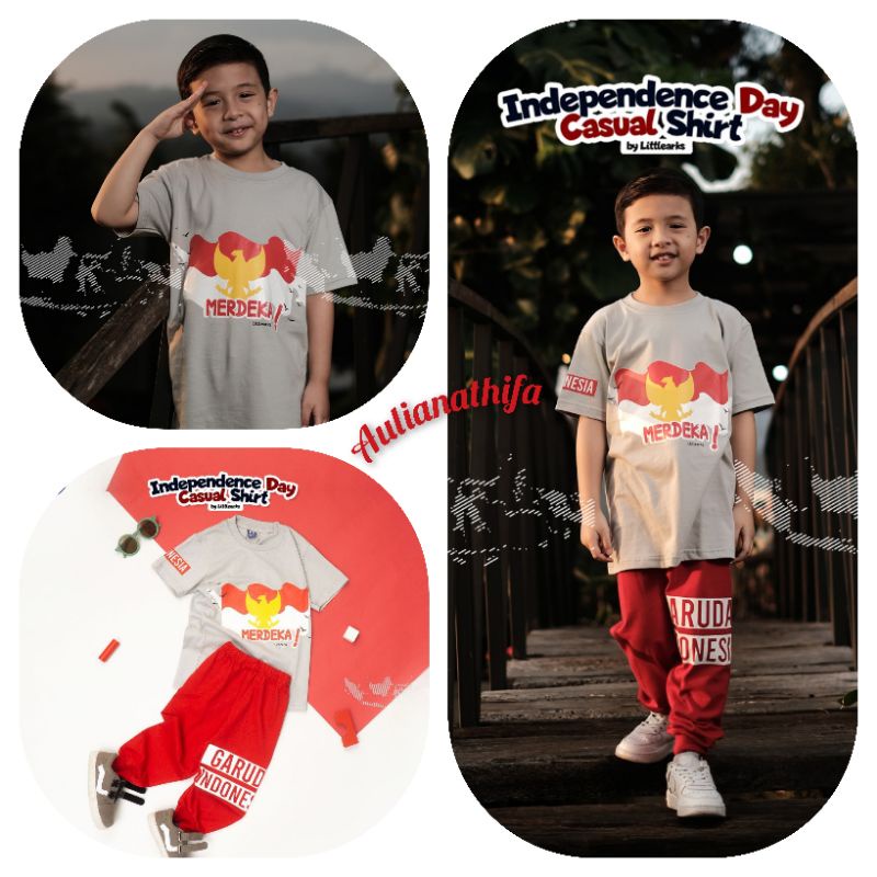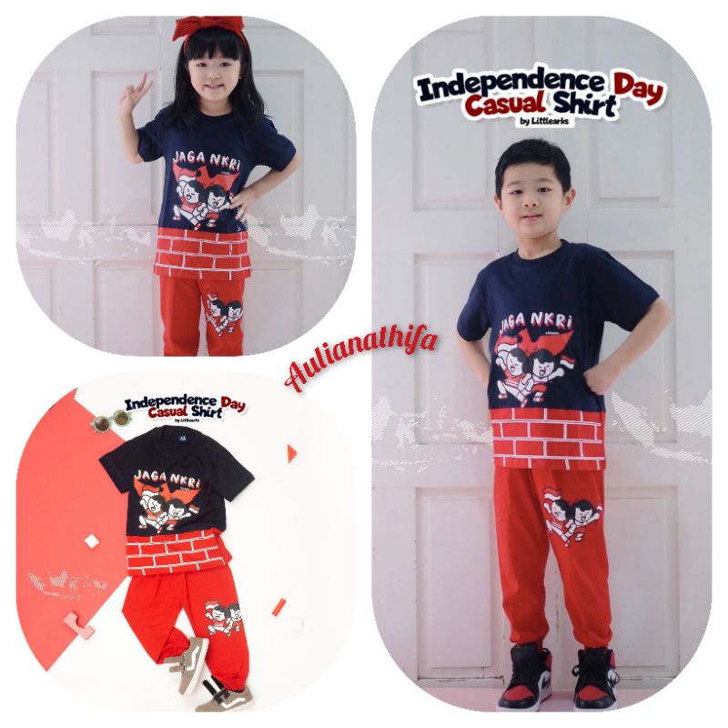 Independence Day Casual Shirt Baju Setelan Anak Tema Kemerdekaan Indonesia by Littlearks Laki-laki/Perempuan sz 2-8 th
