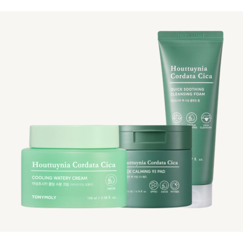 Tonymoly Houttuynia Cordata Cica Sets ( Cooling Watery Cream 100ML, Tonerpads, Cleansing foam 150mL)