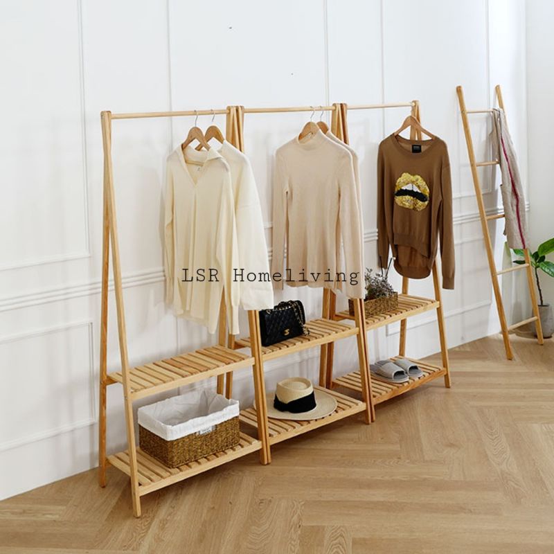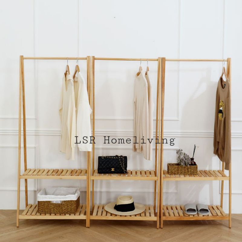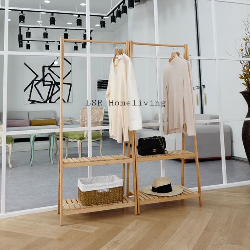 Stand Hanger - 2 Tingkat / Gantungan Baju Serbaguna / Gantungan Baju Kayu / gantungan baju murah