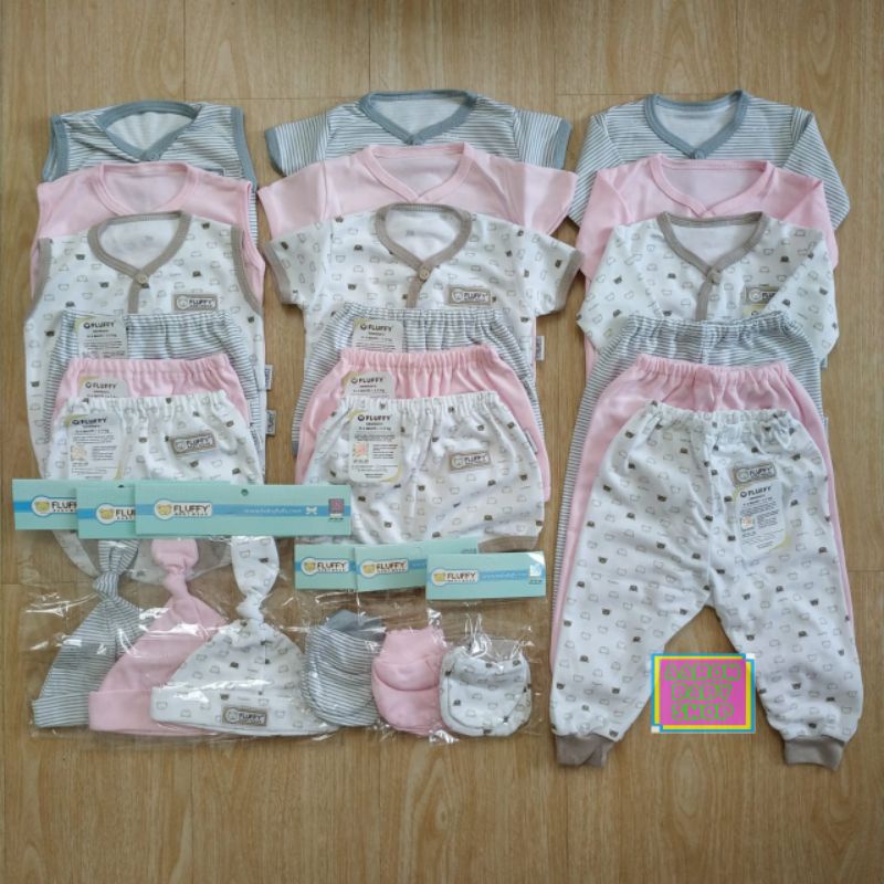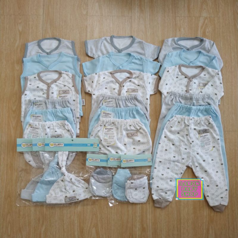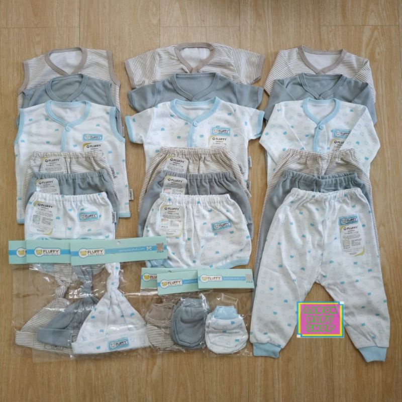 FLUFFY Paket Newborn 24pcs Baju BIS - Mix Biru / Mix Pink / Abu / Khaki SNI