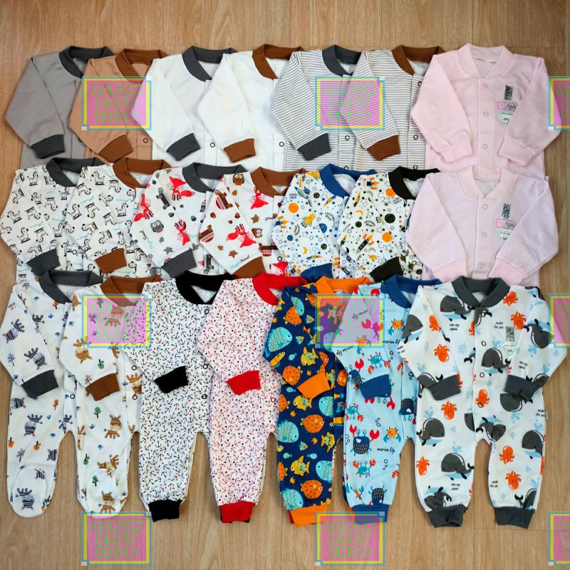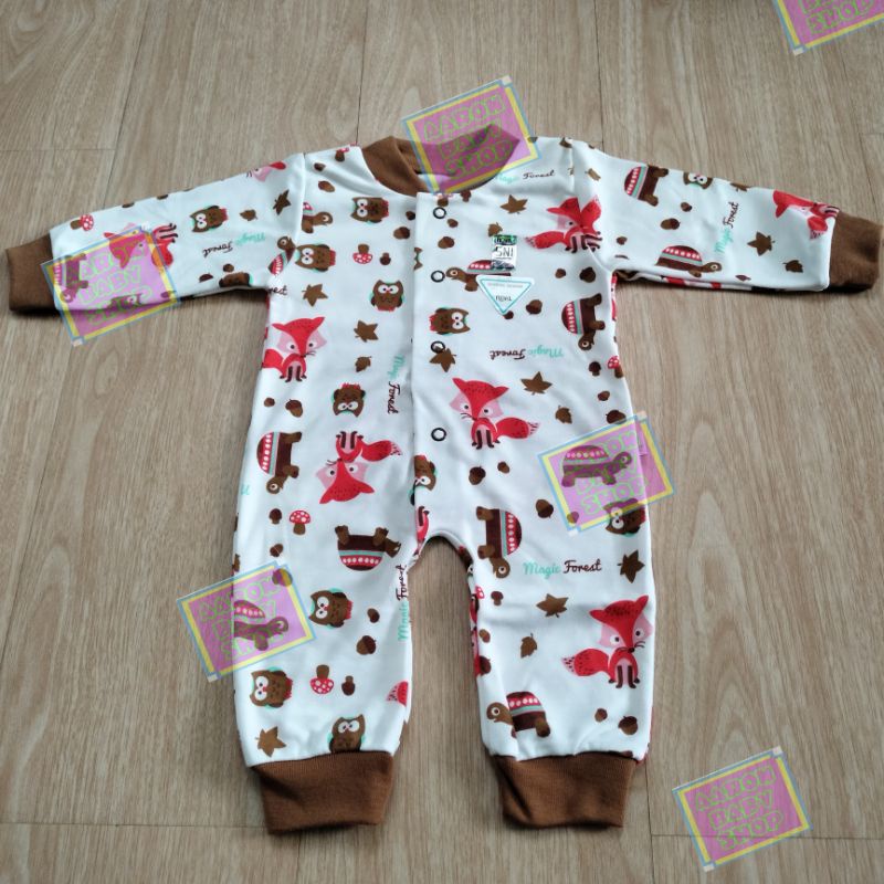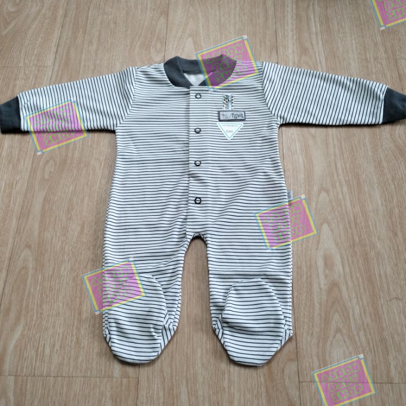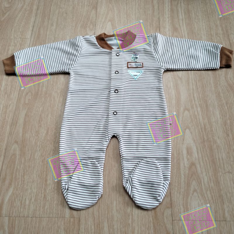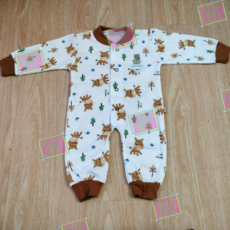 NOVA Sleepsuit / Jumper Buka / Tutup Kaki / Baju Kodok Panjang Bayi / Jumpsuit Polos Abu / Coklat / Putih / Pink SNI Polos / Motif / Pink atau Motif Garis / Zebra / Fox / Jangkar / Rocket SNI