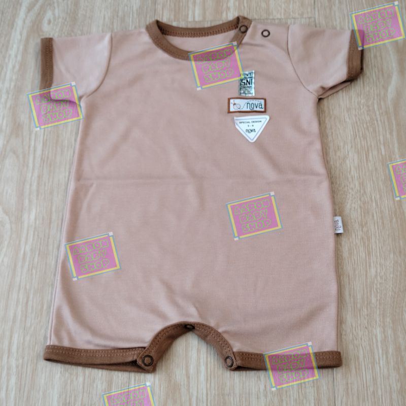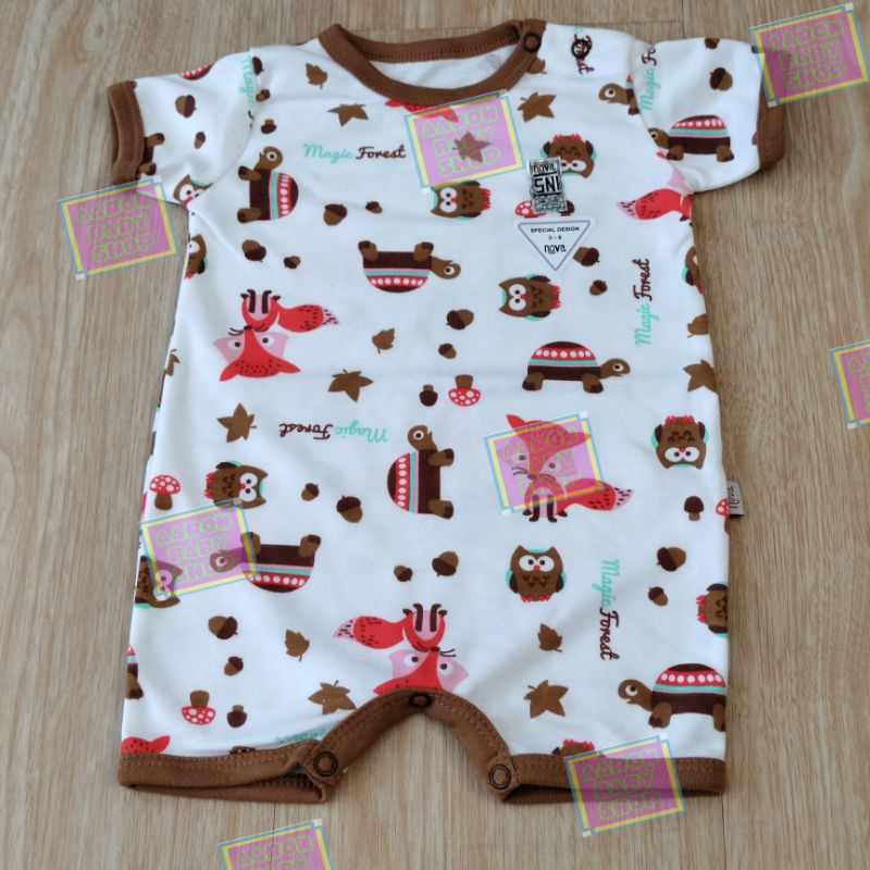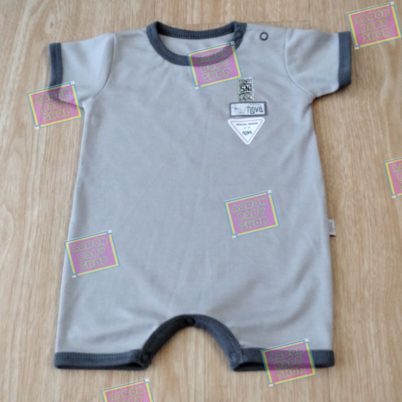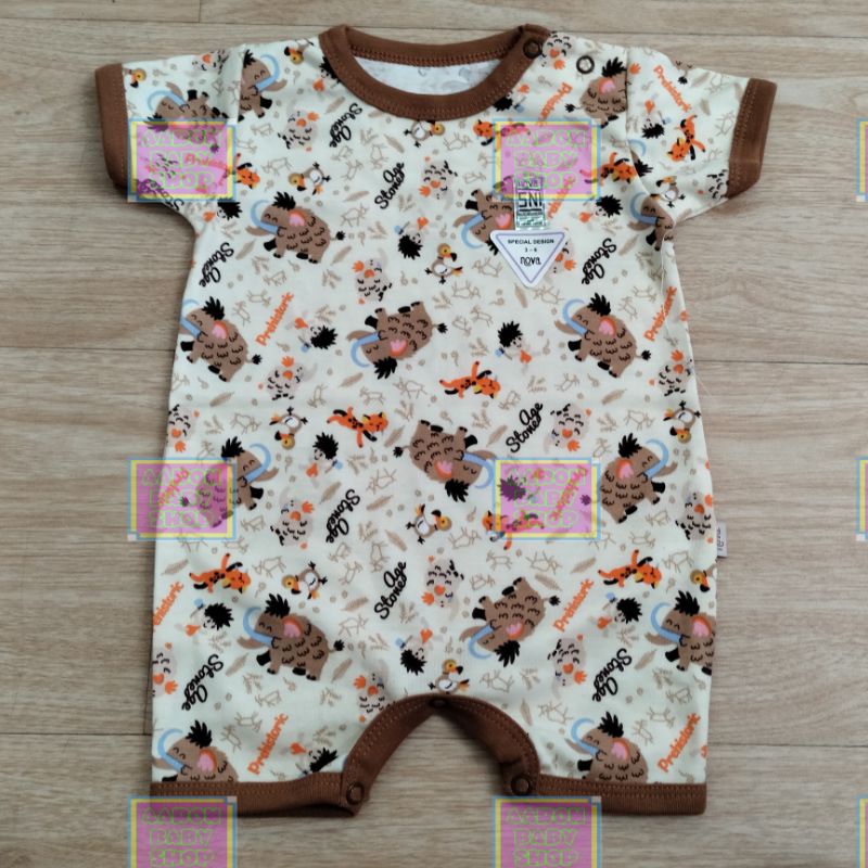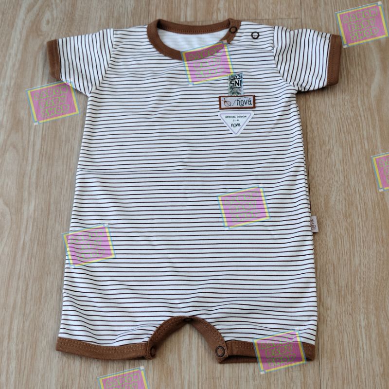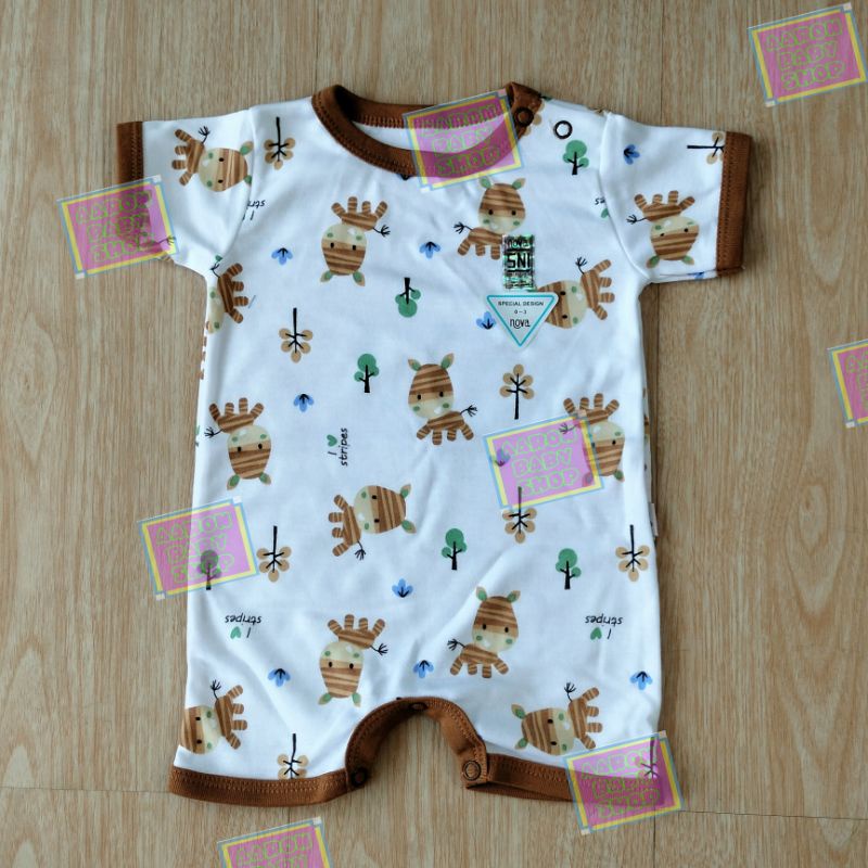 NOVA Romper Bayi Part 1/2 Size 0-3 / 3-6 / 6-9 bln - Jumper Segi Empat / Baju Kodok Pendek / Jumpsuit Polos Abu Coklat Putih / Motif Garis Fox Horse Zebra Beach SNI