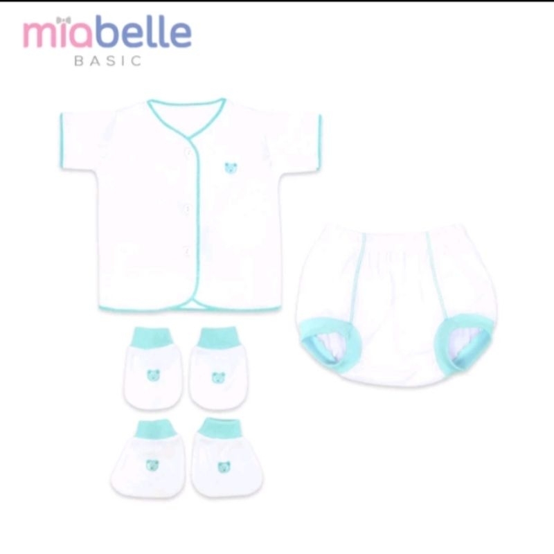 MIABELLE Set Newborn 3in1 Pendek Polos Warna / Putih Baju Celana Pop Sarung Tangan Kaki STK SNI