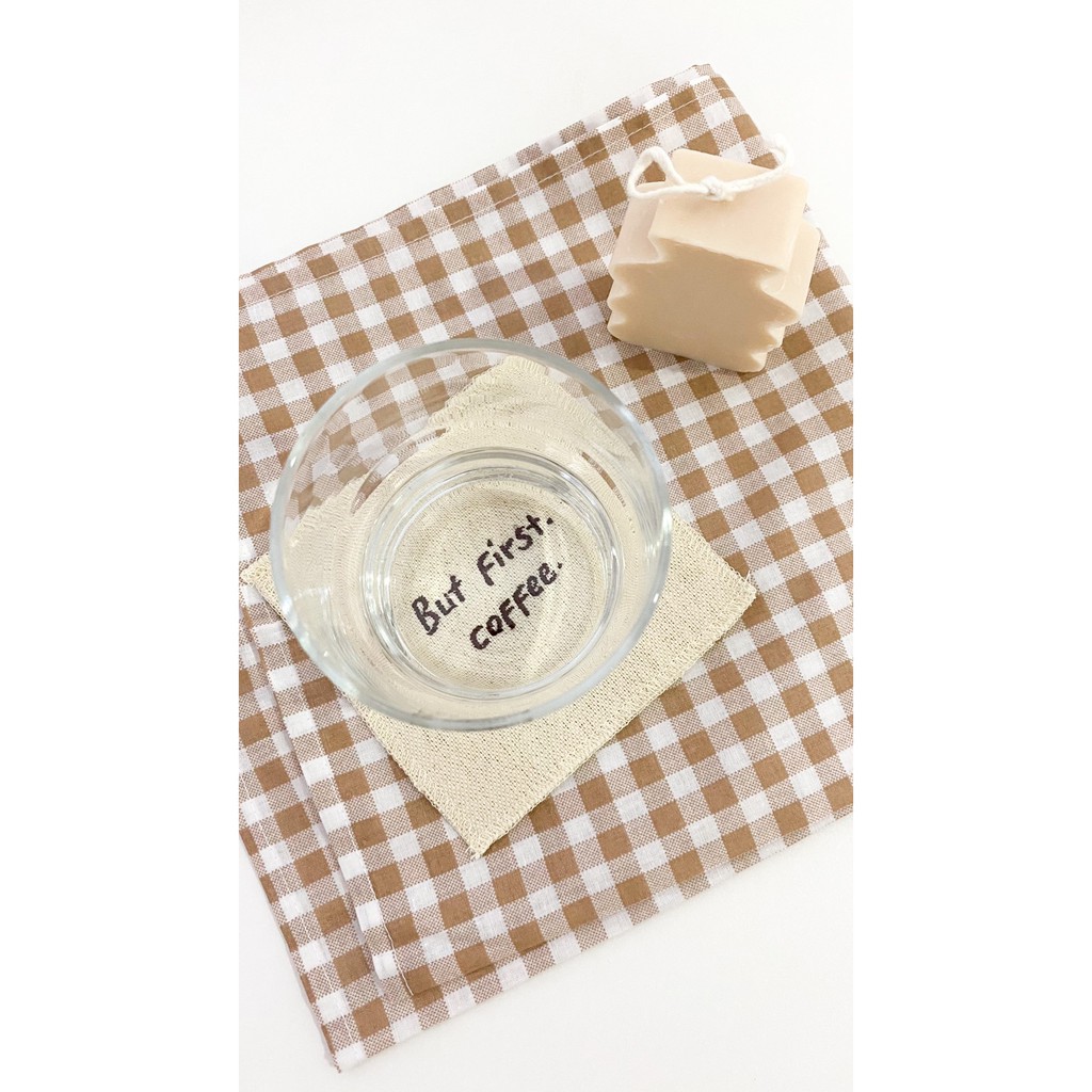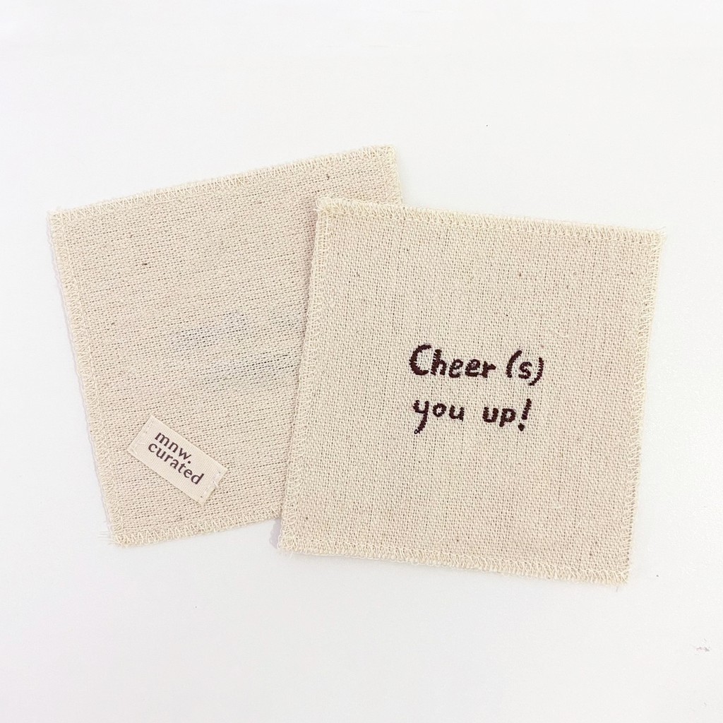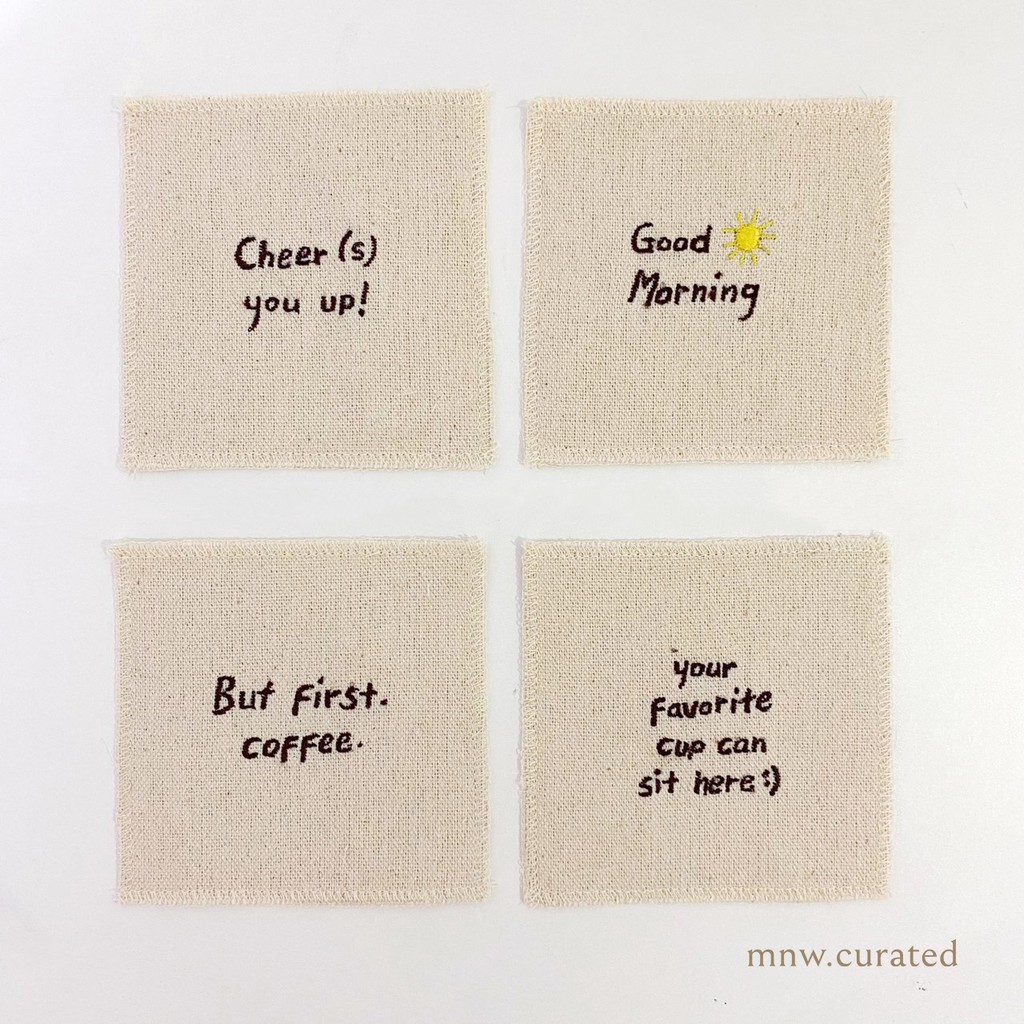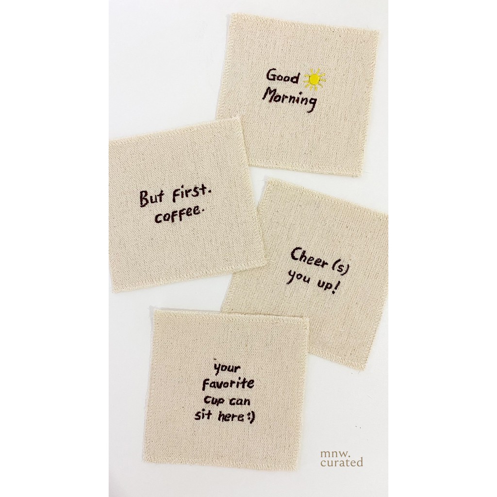 Embroidery Quote Canvas Coaster by mnw.curated (alas gelas/ tatakan gelas dengan bordir kata-kata)
