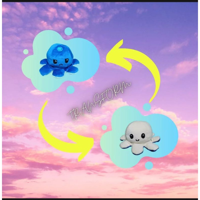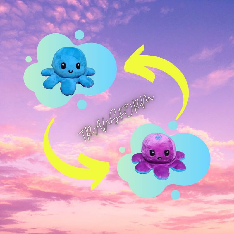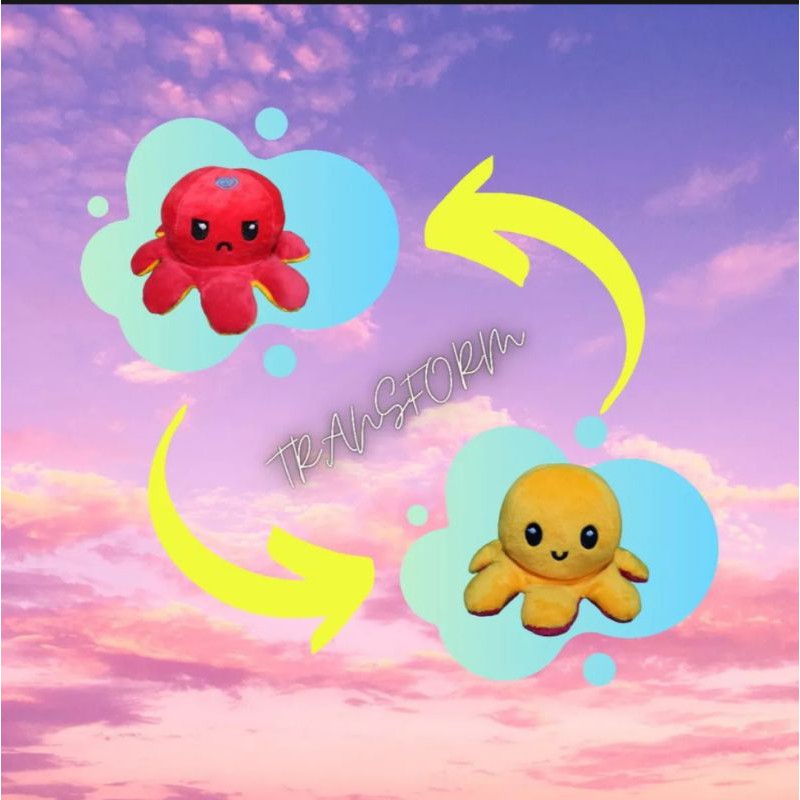 Boneka Gurita Halus Bolak - Balik Dua Sisi Reversible / ubur ubur mini, Octopus Doll/Boneka Lucu