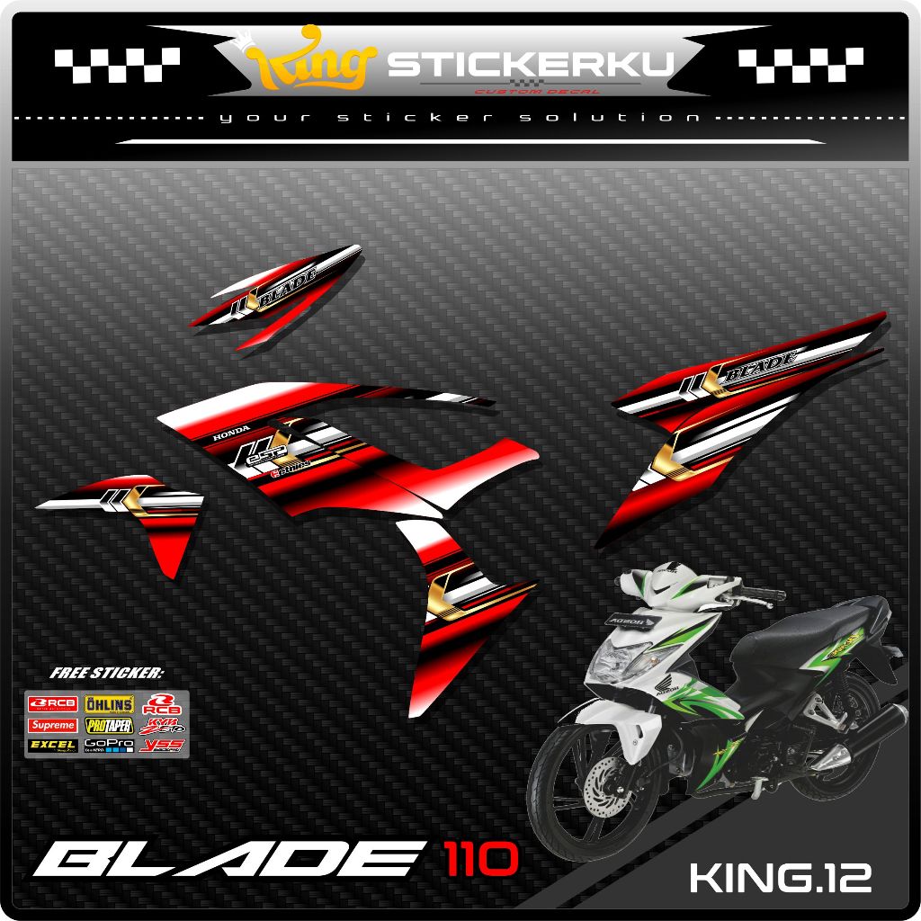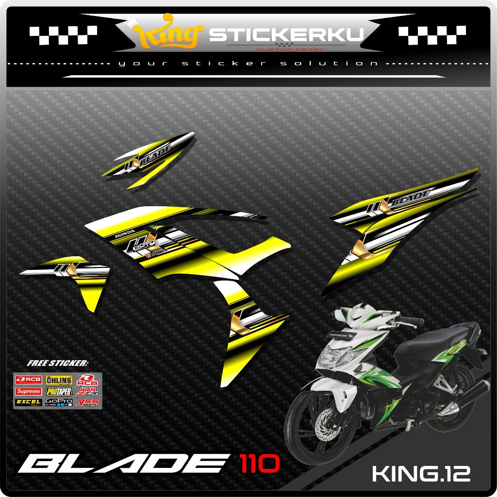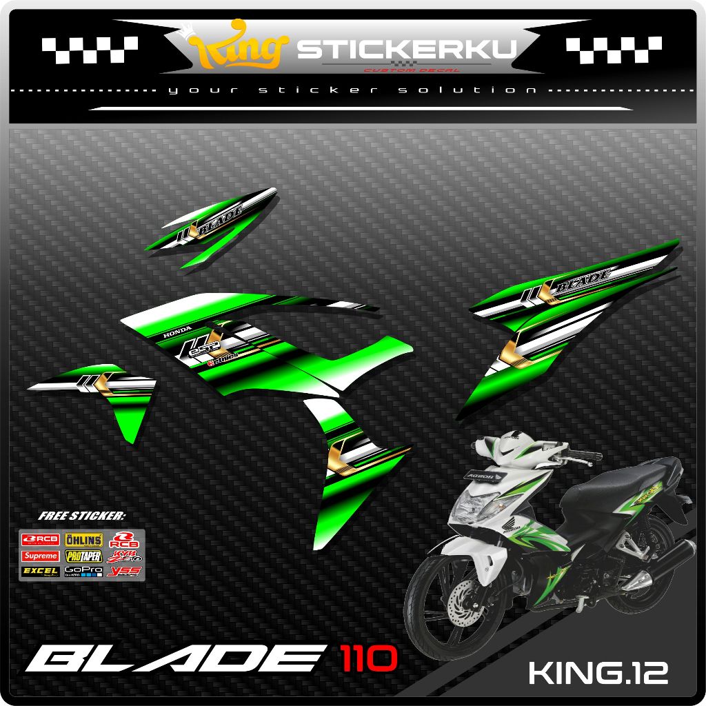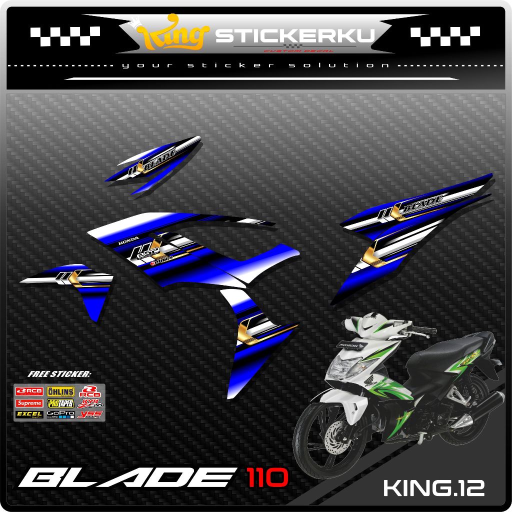 Striping Blade 110 Variasi - Sticker Stiker Variasi Motor Blade 110 Desain Grafis Racing Gratis Stiker Sponsor .KS.012