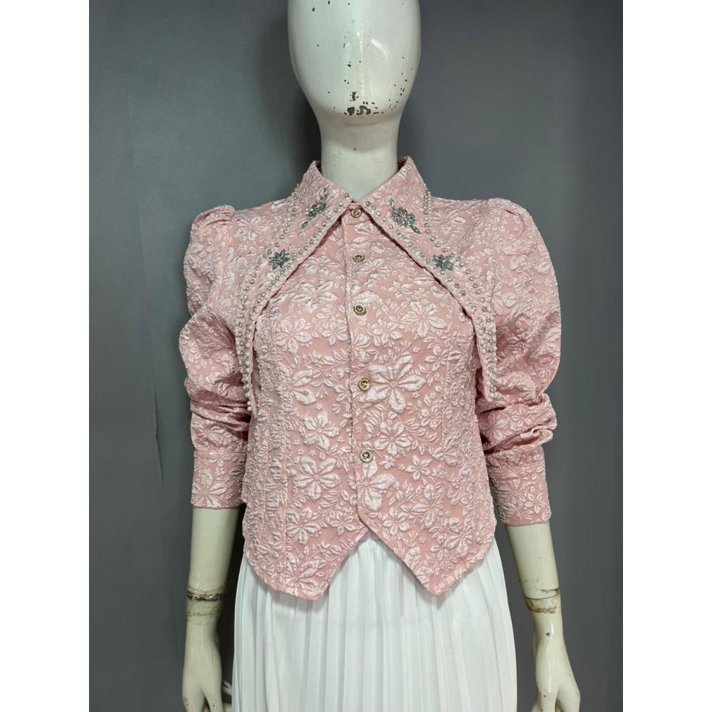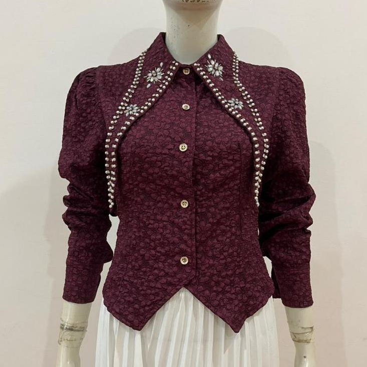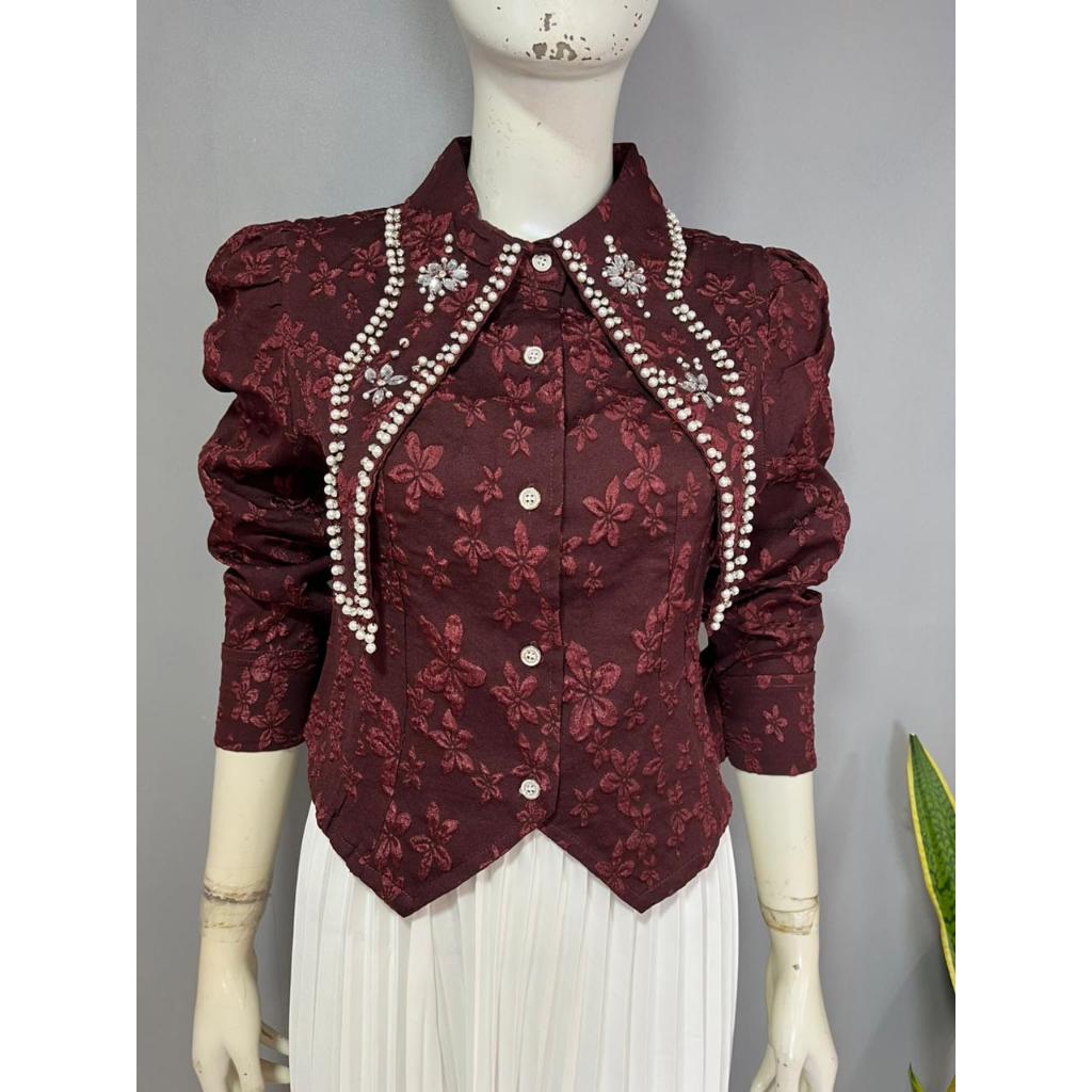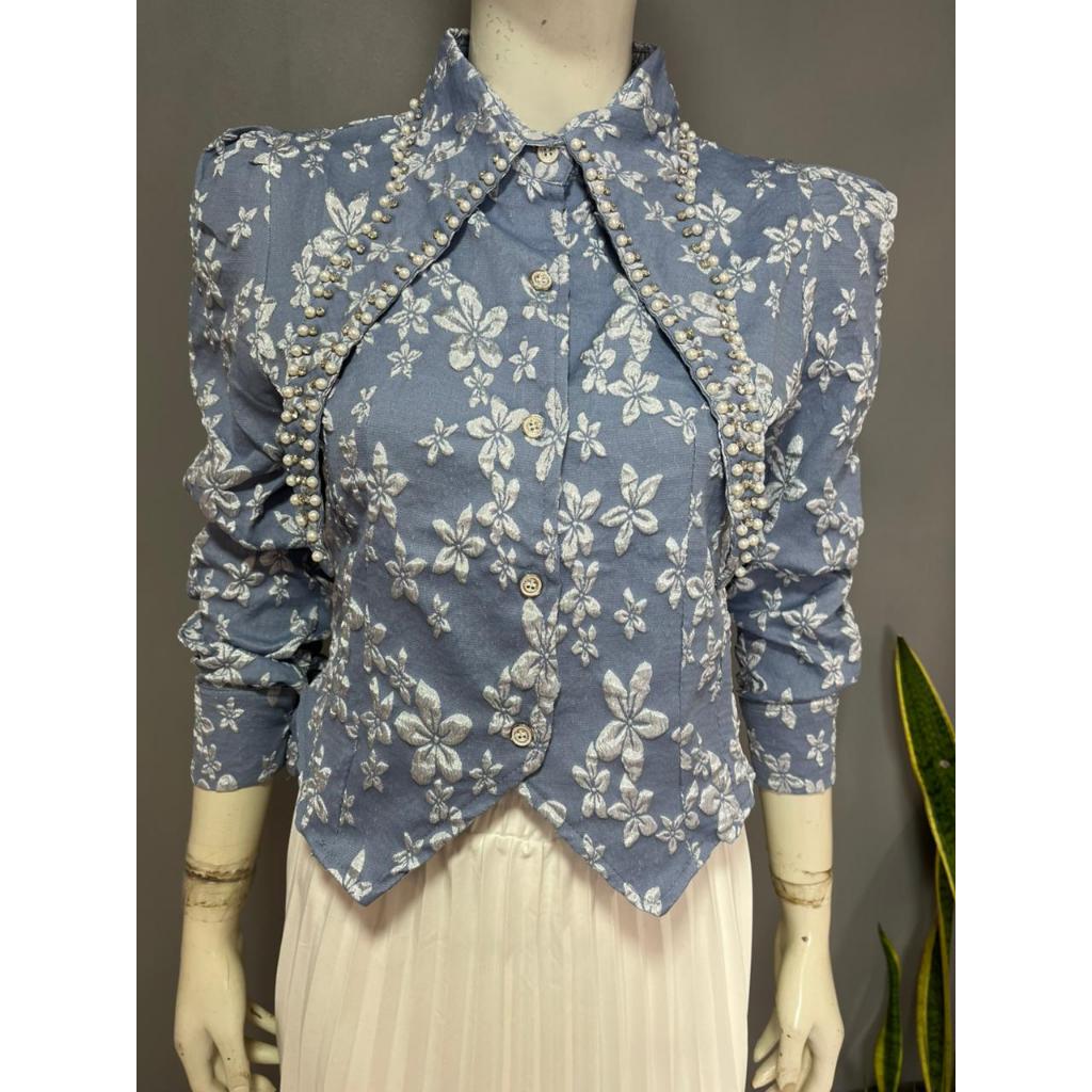 MILA READY STOK EMBOS CROPTOP PREMIUM KEMEJA WANITA ATASAN WANITA LD90CM