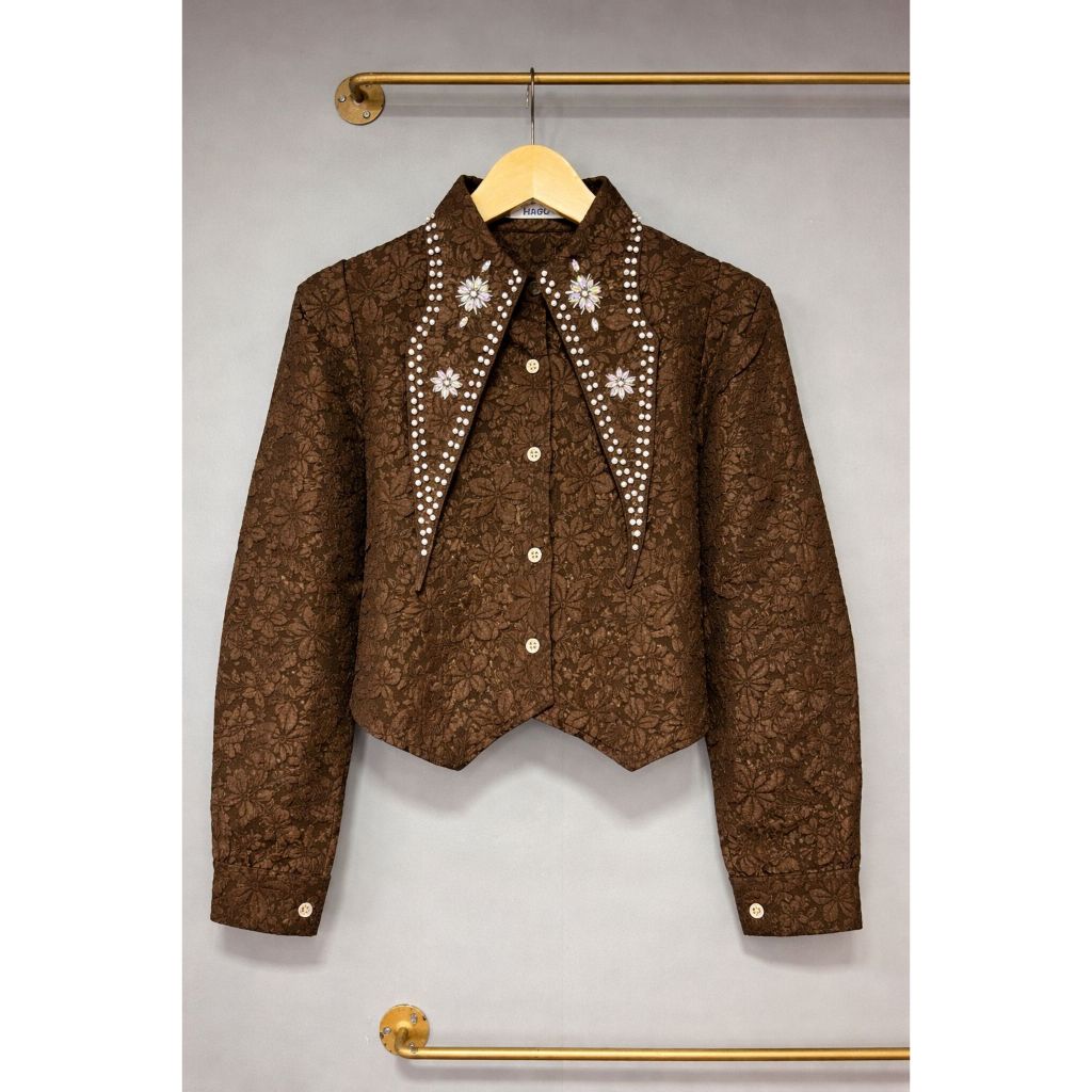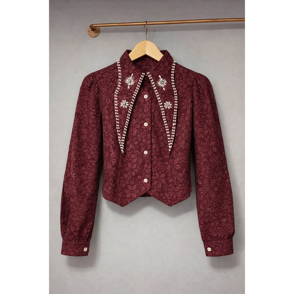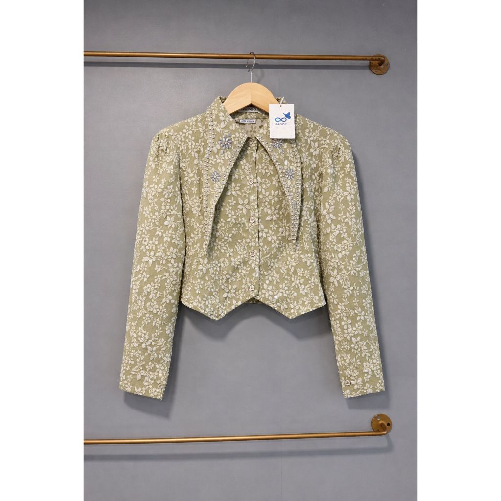 MILA READY STOK EMBOS CROPTOP PREMIUM KEMEJA WANITA ATASAN WANITA LD90CM