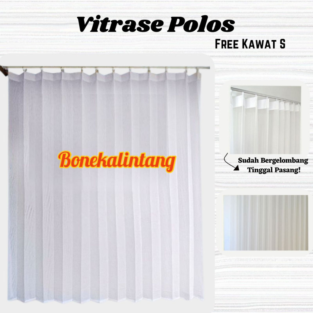 GORDEN VITRASE KAWAT S POLOS 200 X 250 - 300 CM TINGGI 3 METER HORDENG PUTIH PLISKET JENDELA PINTU TIRAI MINIMALIS VITRAS DALAMAN GORDEN PUTIH