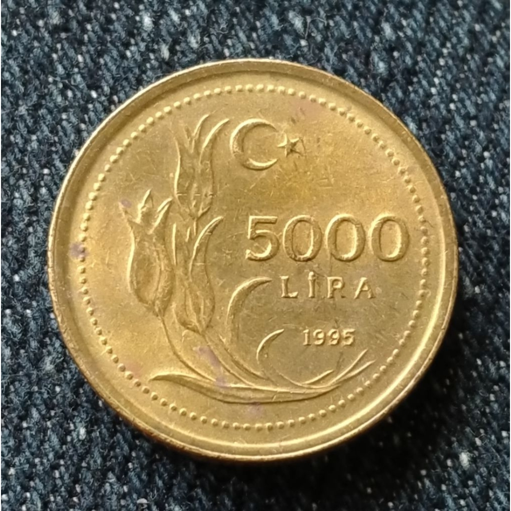 Koin Kuno Turki 5000 Lira tipe kecil tahun acak