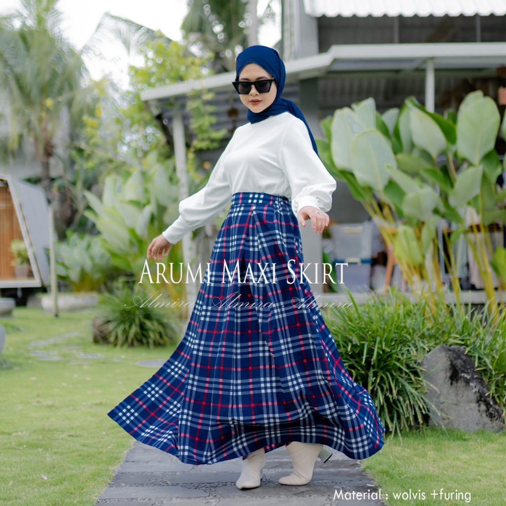 Rok Kotak Kotak Korean Style Panjang Arumi Tartan Skirt Griyaraditya Almira