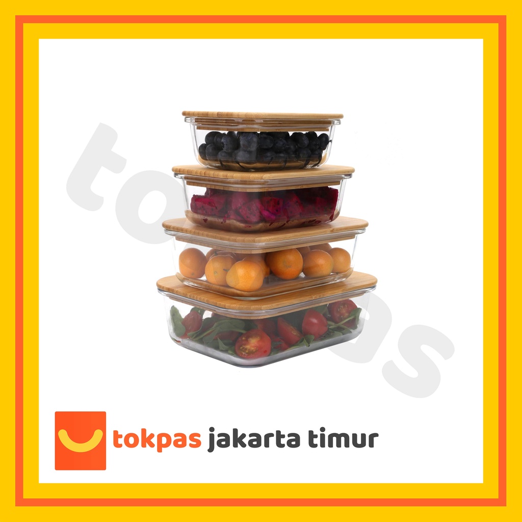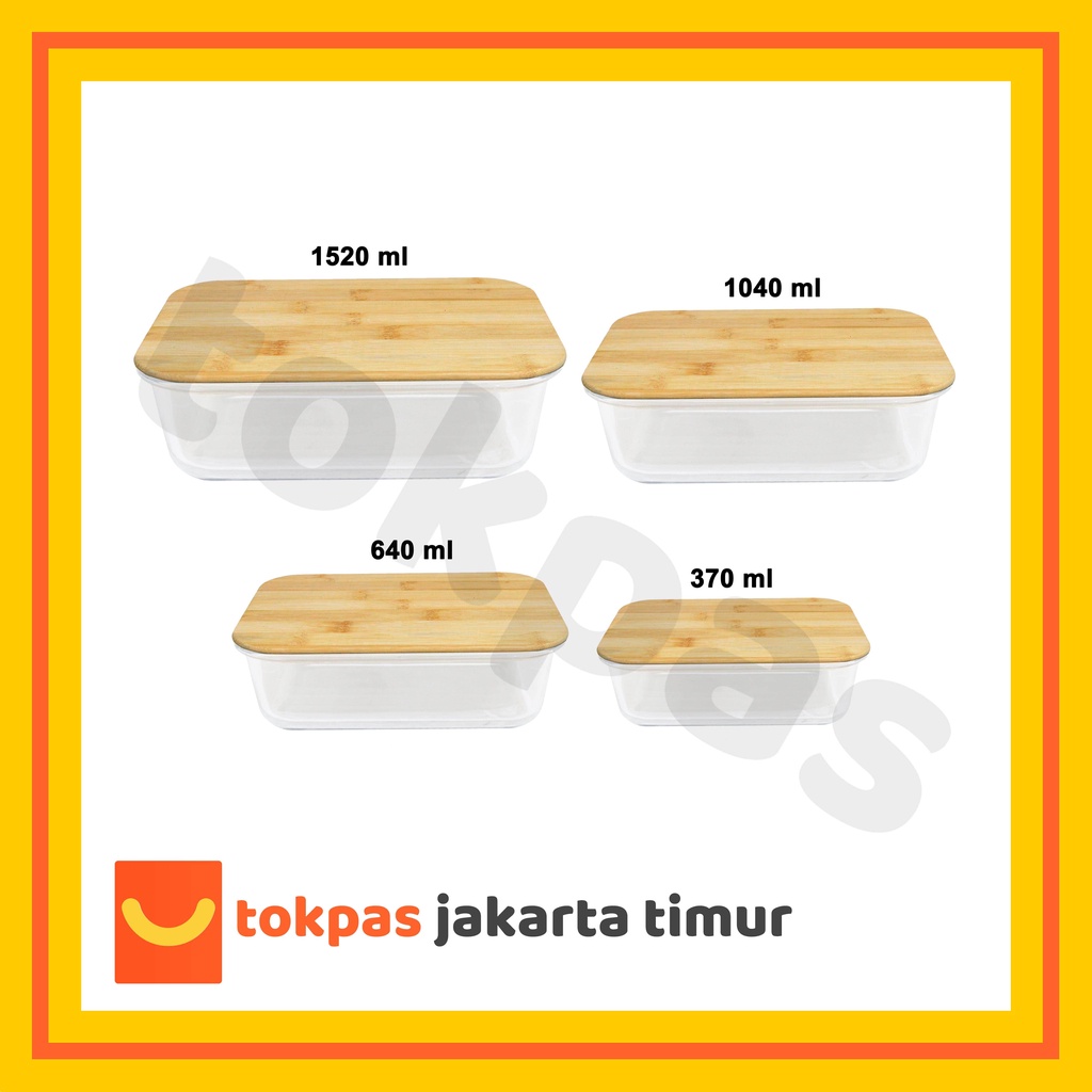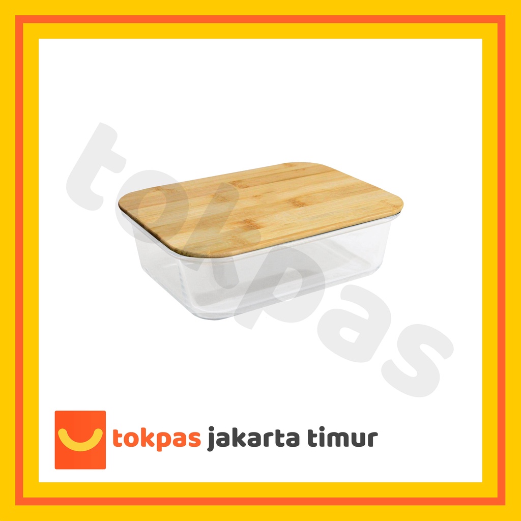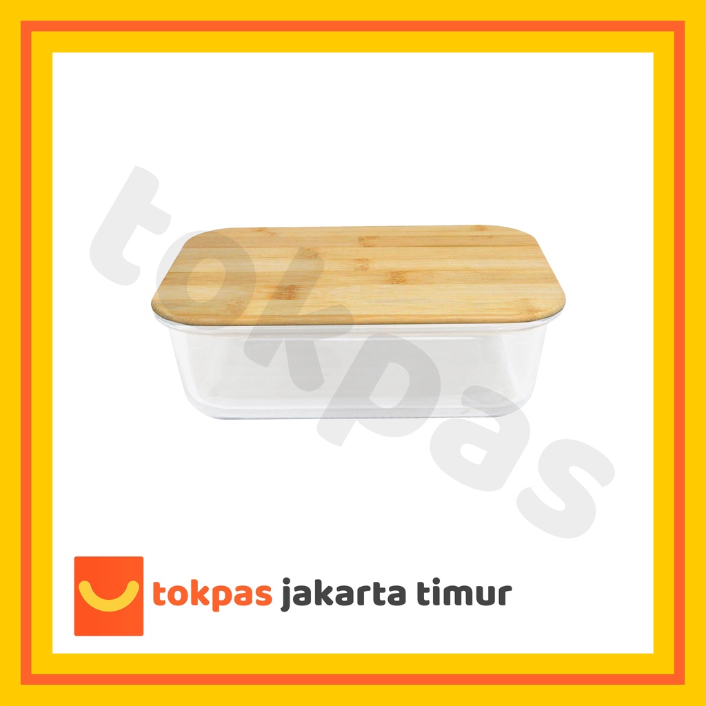 Tempat Kotak Makanan Kaca Tutup Kayu Bambu / Glass Food Container With Bamboo Lid