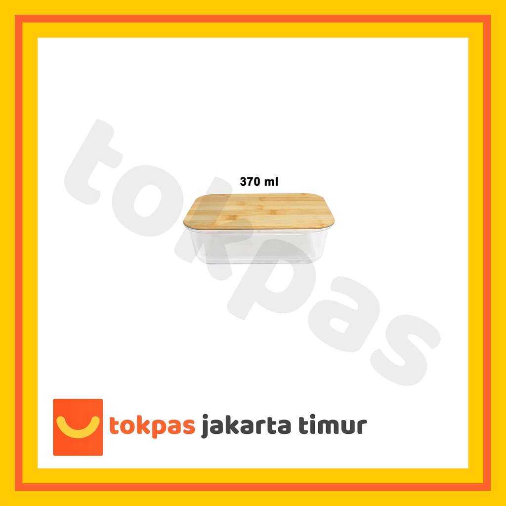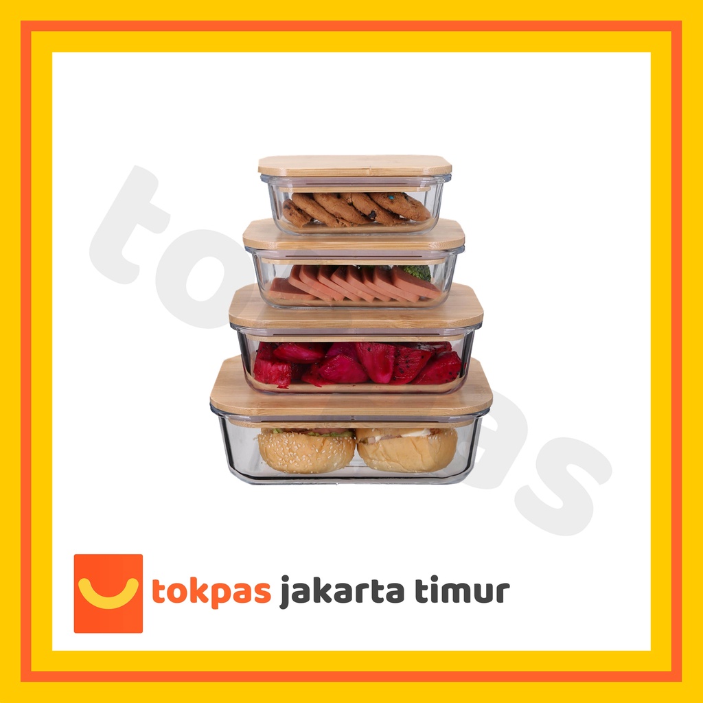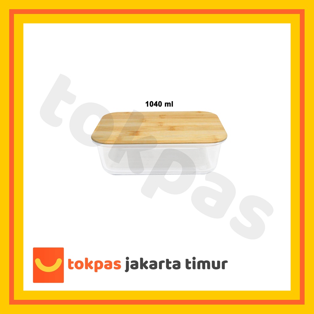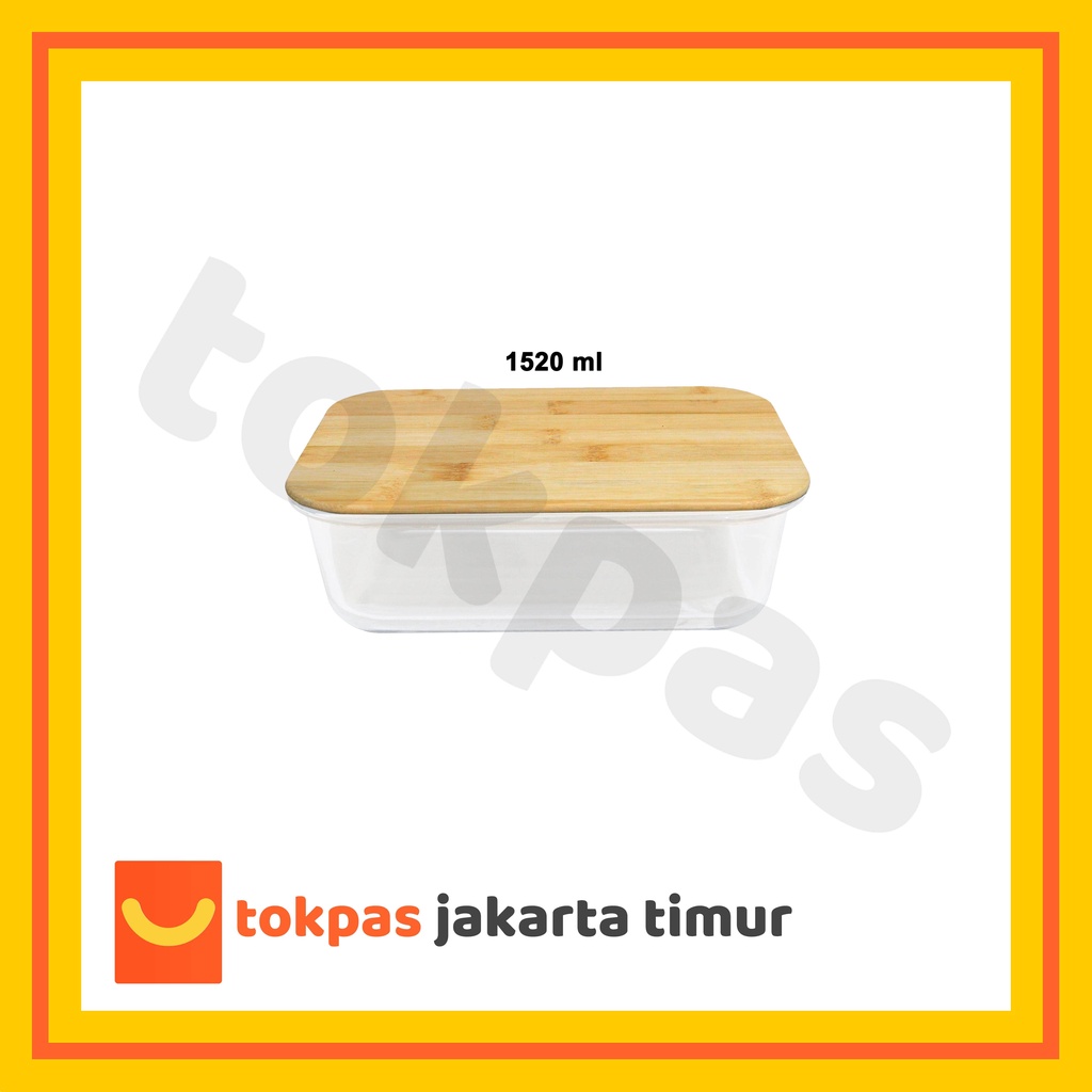 Tempat Kotak Makanan Kaca Tutup Kayu Bambu / Glass Food Container With Bamboo Lid
