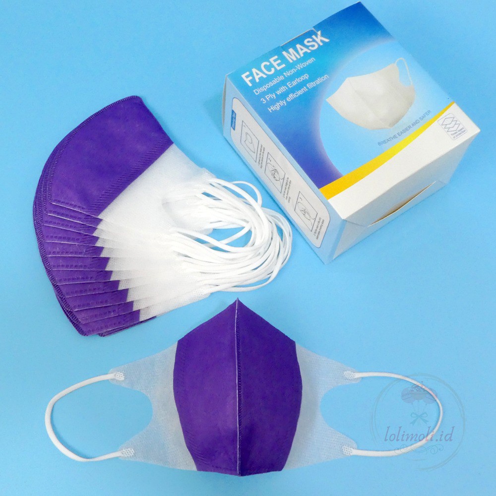 Lolimoli.id Masker Dewasa Earloop Polos Strap Konektor Tali Hijab Masker Duckbill List Warna 3Ply Import