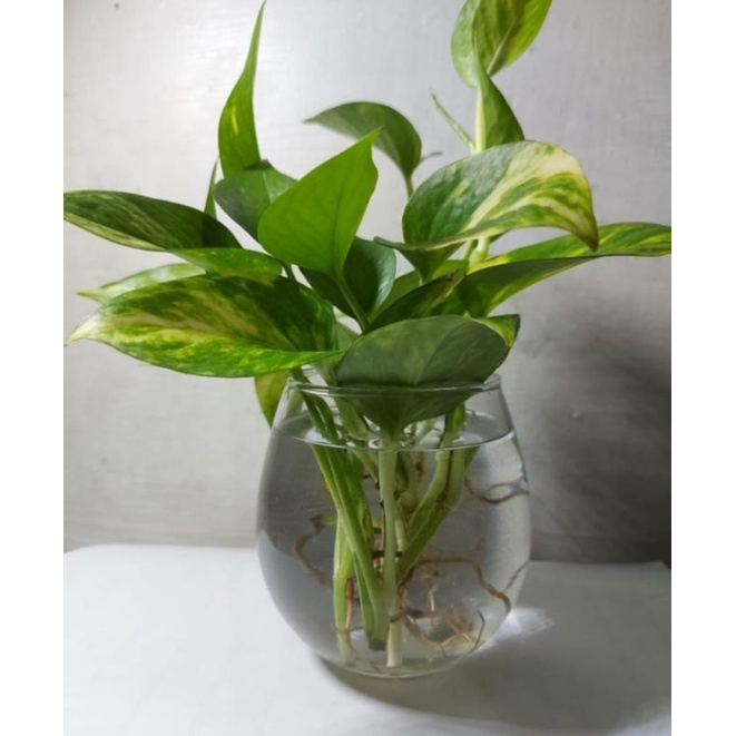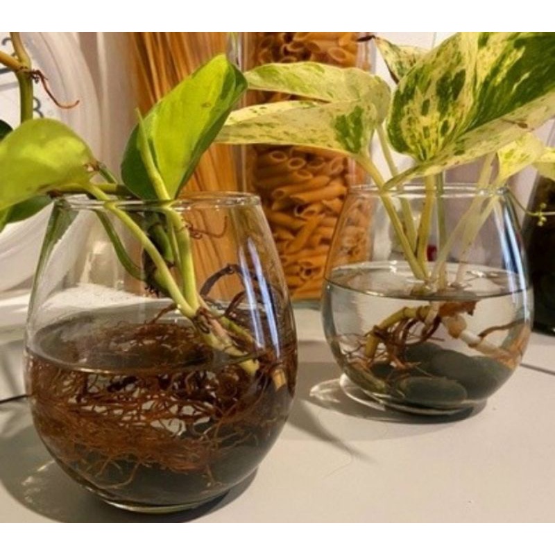Vas Bunga / Gelas bulat estetik / tatakan kayu wooden / Hydroponik