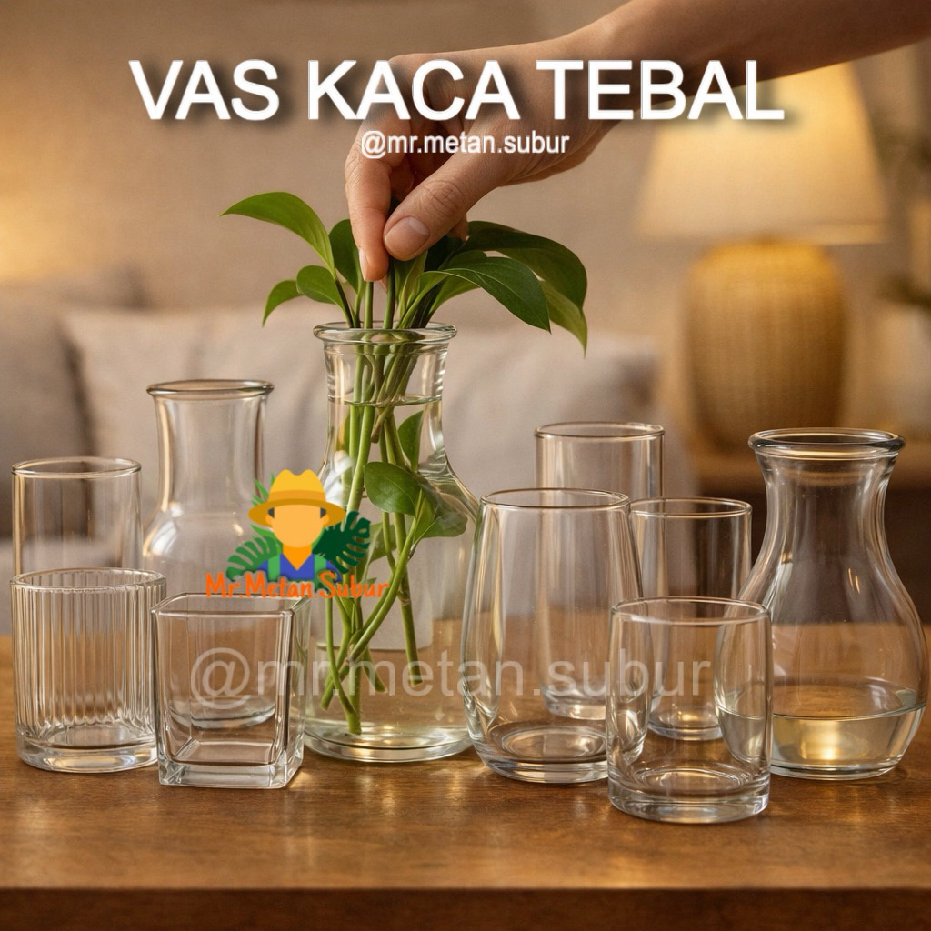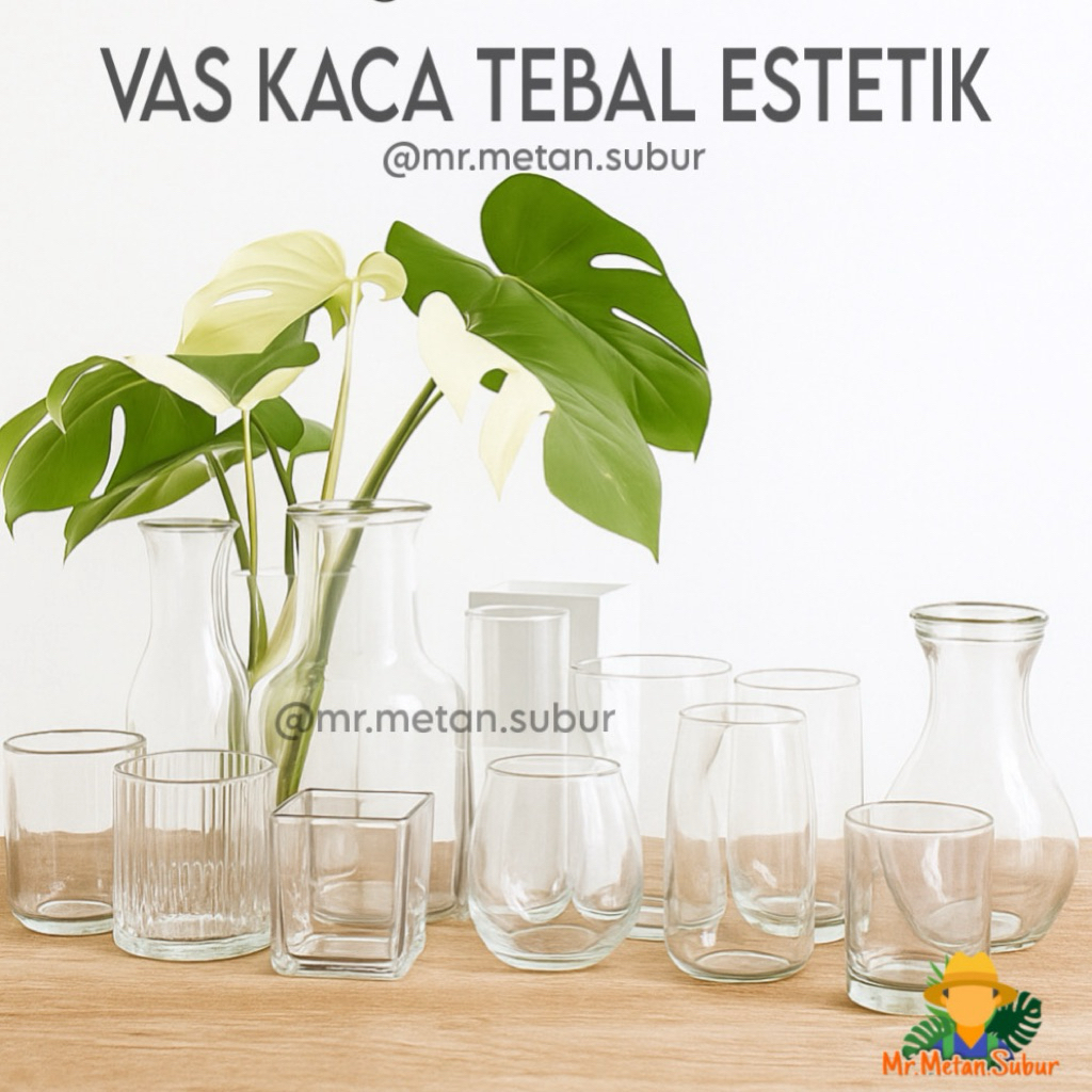 GARANSI VAS KACA Wadah TANAMAN AIR ( vas saja ) KUALITAS TERBAIK untuk hiasan meja rumah kantor wadah cupang ikan aquarium dll