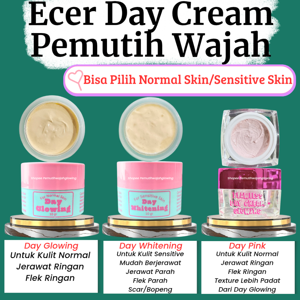 Ecer Day Whitening Cream Pemutih Wajah Jerawat Flek Hitam Whitening Glowing Skincare Perawatan Wajah